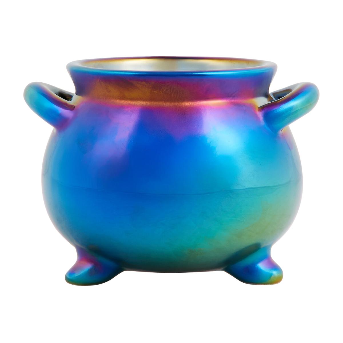 This blue cauldron candle makes a striking statement piece, particularly suited to eclectic, boho, or modern interiors. I love how its iridescent finish adds a pop of colour and texture, making it an eye-catching decorative item even when unlit. It works well displayed on a mantelpiece, a side table, or as a centrepiece on a decorative tray. For styling tips, consider pairing it with soft textures or metallic accents to highlight its shimmering finish. It's also versatile enough to sit amongst greenery or other ceramics for an elevated look, and since it's relatively substantial, it can serve as both a decorative object and a functional candle. Just be mindful to keep it away from direct heat sources and handle with care due to its material.