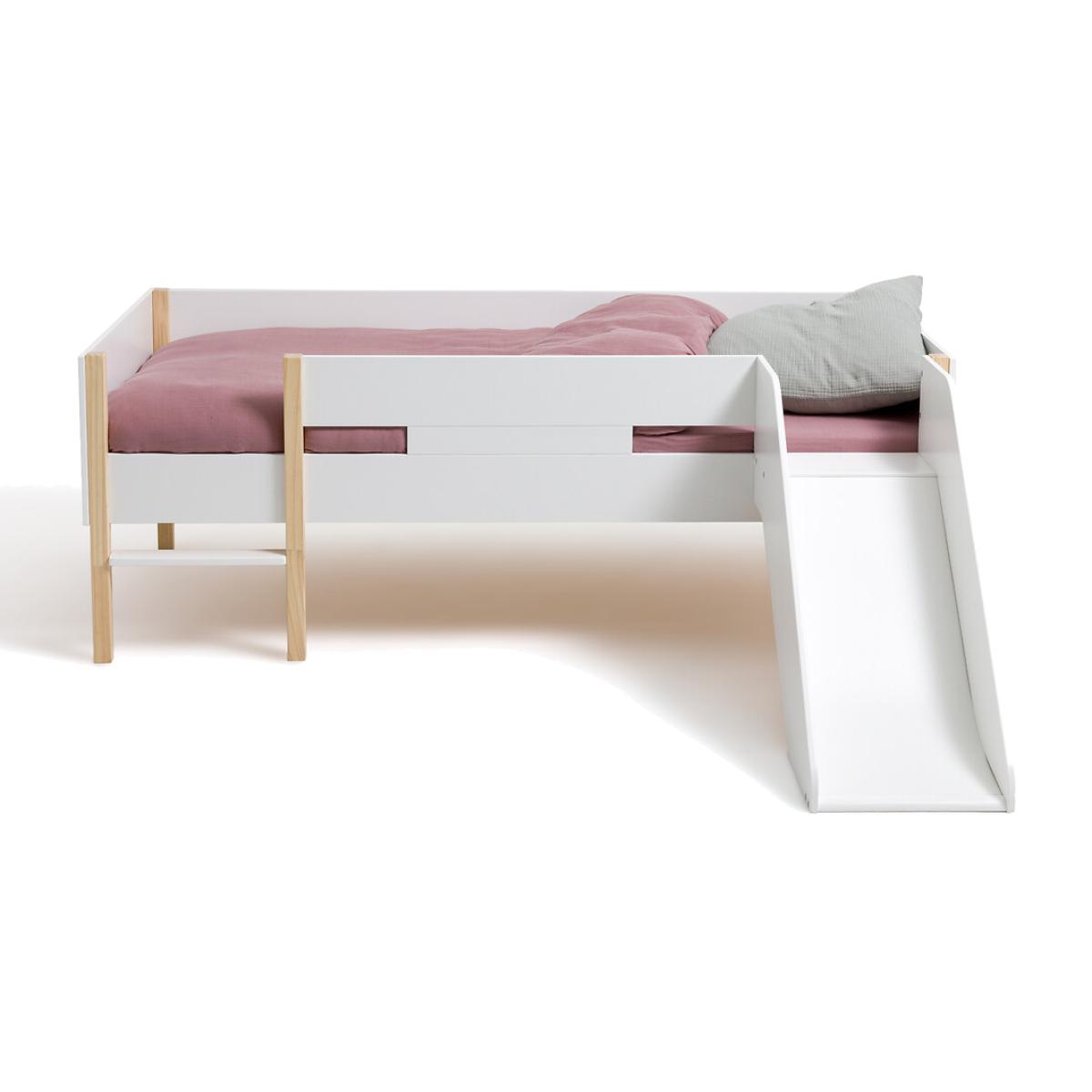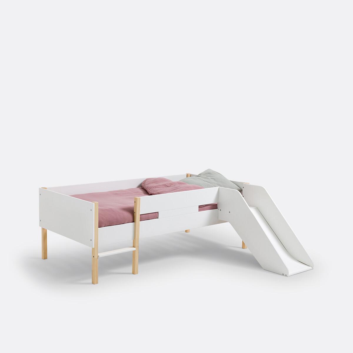 The Caume slide bed has many good points: a structure and base in solid pine, FSC® certified pine, a slightly raised space under the bed ideal for storing toys... And, above all, a slide to get up on the right foot!Product Details • FSC®-certified solid pine and MDF structure • Water-based acrylic paint finish • FSC®-certified solid pine slatted base • Sleeping area: 90 x 190cm. Quality Info • This product complies with current safety requirements. • This bunk bed is not suitable for children under 6 years of age. ATTENTION, slide: • designed for home use • Minimum age: From 6 Years • Maximum weight : 50kg. Dimensions • Length: 193cm • Height: 70cm • Depth Including Slide: 183.9cm • Depth Without Slide: 97.6cm • Under bed: H31.7cmDelivery:. This product is sold ready to assemble. Note! Please check that all access points are large enough to accommodate your delivery (doors, stairs, lifts). • WOOD FROM SUSTAINABLY MANAGED FORESTS. FSC® certified wood comes from forests that are environmentally, socially and economically well managed. Dimensions and weight of parcel2 parcels • L192.1 x H5.6 x D60.8cm. 22kg • L117.1 x H12.2 x D61.4cm. 29.5kg