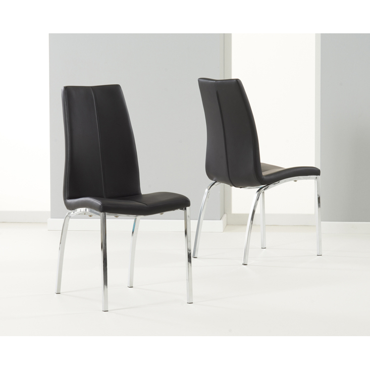 Cavello Chairs are a stunning accompaniment to your contemporary dining table. Chic and modern, the chairs are a striking alternative to traditional dining chairs. Upholstered in black PU leather and featuring chrome legs. Also available in Grey, Cream and White.