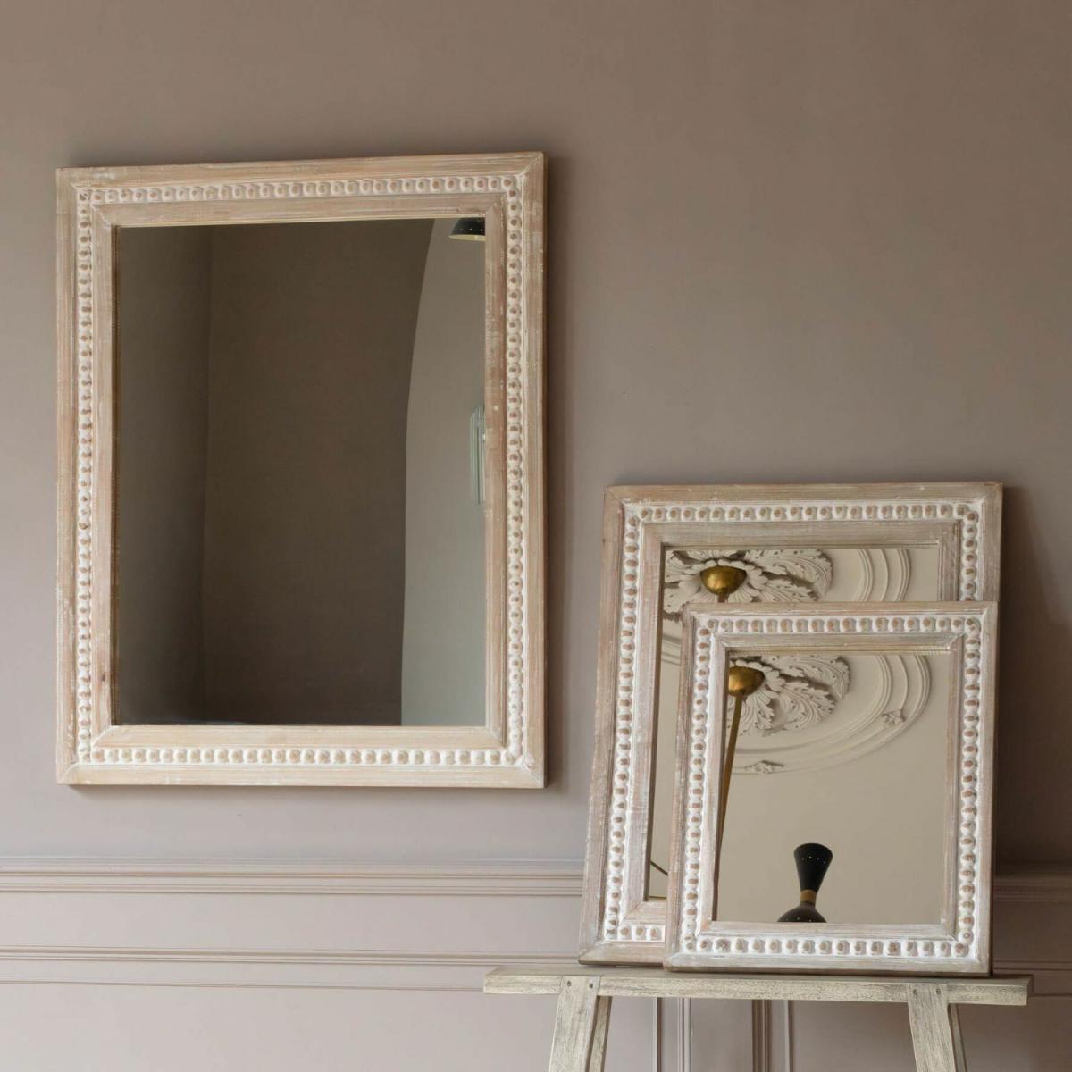 Originally, this collection was intended to be a set of photo frames but Jamie Graham had a new vision in mind for the Cavendish range. Transformed into mirrors which are exclusively designed for G&G, each has a distressed whitewashed finish and an antique, bobbin-style mango wood frame inspired by the late 19th century arts and crafts movement. Small: H60 x W50 x D4cm. Medium: H80 x W65 x D4cm. Large: H105 x W85 x D4cm. Distressed whitewashed solid mango wood frame. Bobbin-style details along the frame inspired by the 19th century arts and crafts movement. Chunky 4cm-thick straight-edged frame. Hang portrait or landscape with its dual cleat fixing. Dust the frame when needed. Use standard glass cleaner for the mirror.