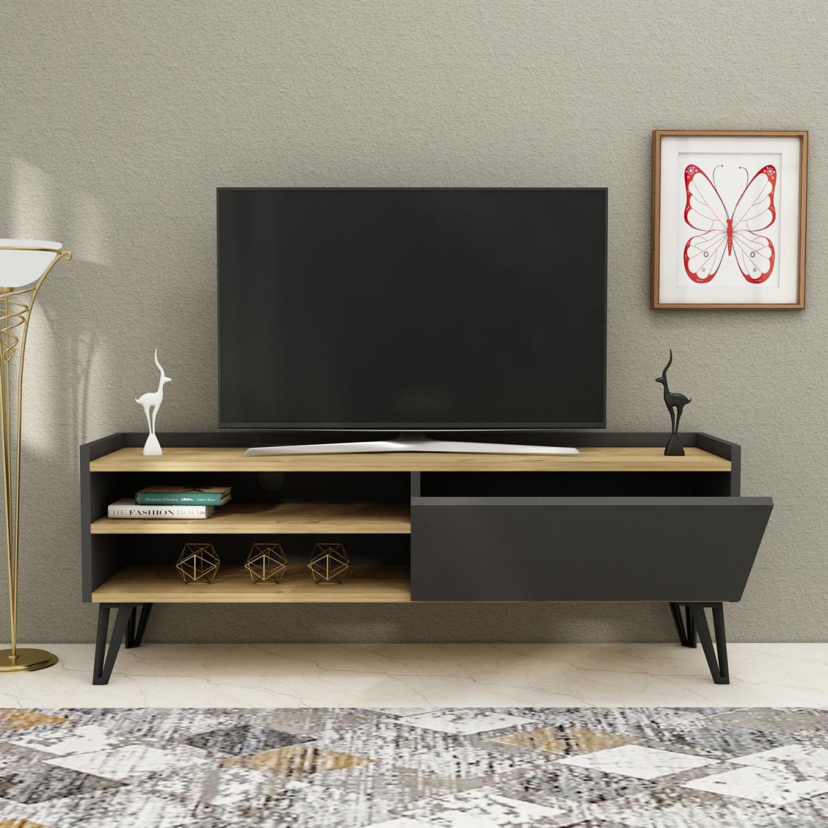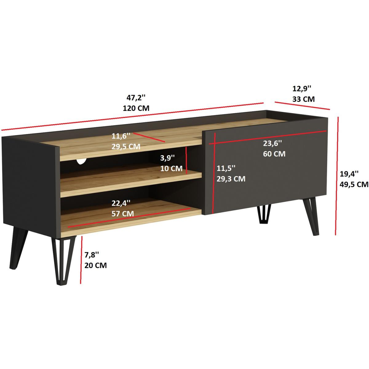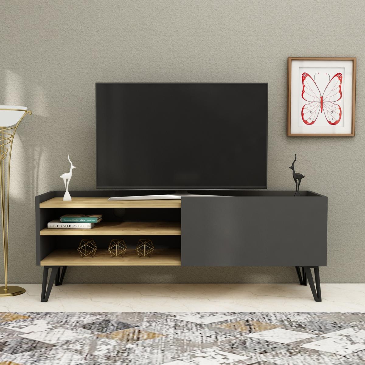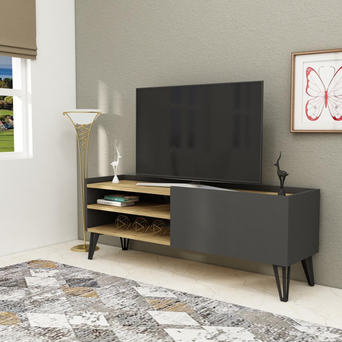 Cavera TV Stand with Cabinet and Shelves - Sapphire Oak & Anthracite