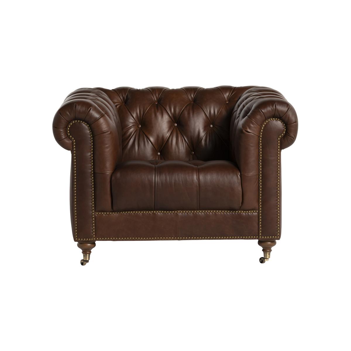 This beautifully crafted armchair combines the timeless charm of a classic Chesterfield with the richness of brown leather for a look that exudes heritage and sophistication. Deep button tufting, rolled arms, and brass stud detailing add character, while plush cushioning ensures comfort for hours of relaxation. Ideal for traditional or vintage inspired interiors, it also makes a striking statement in modern eclectic spaces. Whether placed in a cosy reading corner or alongside your living room seating, the Caversham invites you to sit back, unwind, and enjoy.