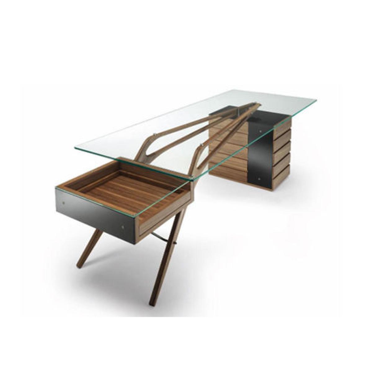 Cavour Desk natural wood / Wood & Glass - 247 x 90 cm - Zanotta