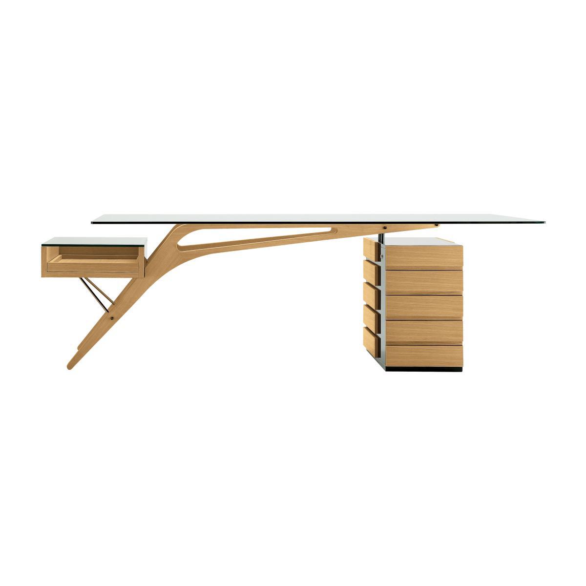 Cavour Desk - Wood & Glass - 247 x 90 cm by Zanotta Black/Natural wood