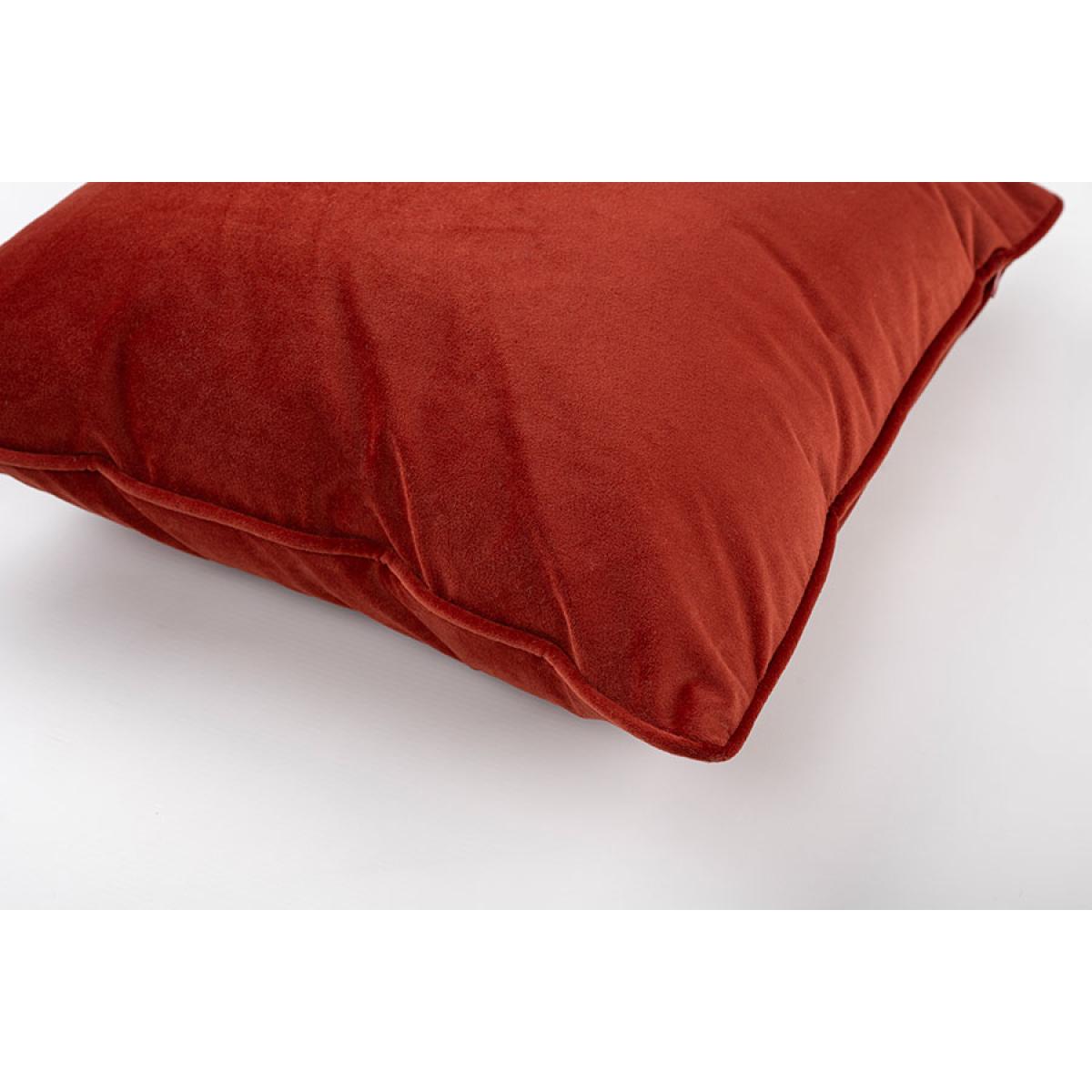 A self-piped cayenne pepper coloured cushion, perfect for adding a hint of colour to your interior. 43cm x 43cm. Polyester velvet fabric. Supplied complete with hollowfibre pad. Zip fixing. Dry clean only, do not bleach or tumble dry.