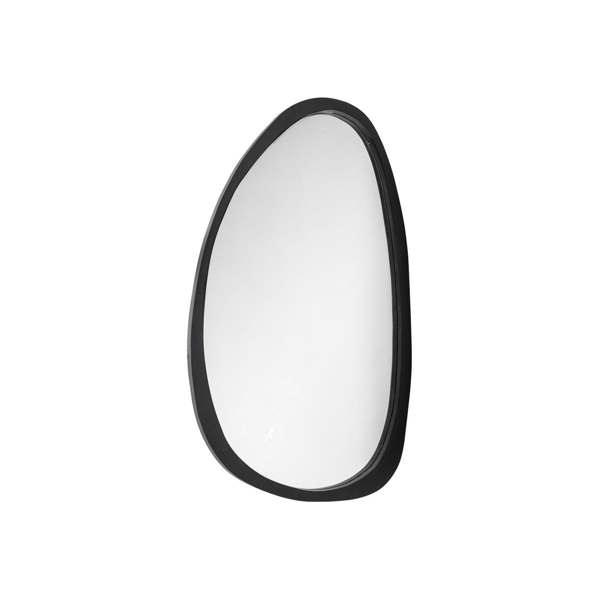 The Caylin mirror displays subtle organic shapes. The irregular lines, soft and fluid, evoke the movement of water. Its gentle, curved forms establish a break with the very strict, linear environments which make up our everyday surroundings, like a window into another dimension. The frame is made of mango wood, a wood with a warm, elegant dark hue.