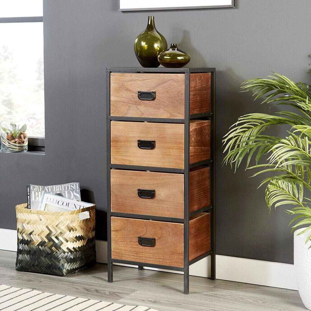 Part of the Cayman Collection, our ready-assembled Cayman 4-drawer chest gives you great storage that is, strong, stylish and space saving. It is solidly built from robust quality materials including solid wood. These are encased in a durable black metal frame and features metal handles, which give this piece a smart two-tone contrast. It is also a space-saving design as it has a small footprint and uses the vertical space well. This one versatile piece works brilliantly in so many rooms. Have it in a hallway for shoes, in a home office for files and paperwork, or in a lounge or even a bedroom or bathroom for clothes, towels, bedding, make-up and more.
