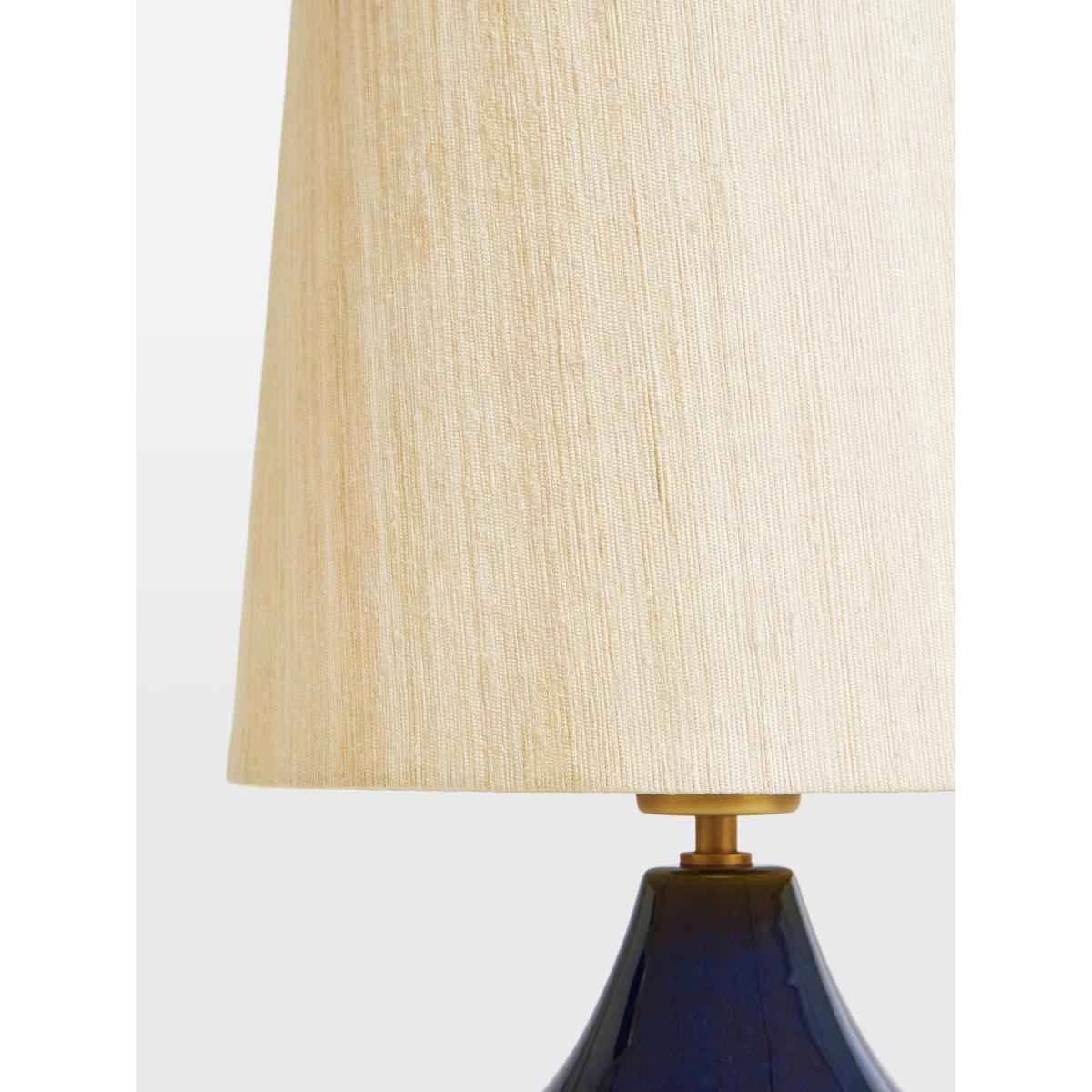 I love this small Cecil lamp for its versatile, understated appeal. Its compact size makes it ideal for bedside tables, desks, or even as an accent on a sideboard, adding warmth without overwhelming the space. The ceramic base's glazed navy tone offers a subtle touch of colour, making it suitable for both modern and traditional interiors. When styling, try pairing it with neutral palettes or contrasting textures, such as natural wood or brass accessories, to create an effortlessly sophisticated look. Practical tips include using a low-wattage bulb to enhance the cosy ambiance and consider layering with other small lamps or candles for added depth and interest in your room.