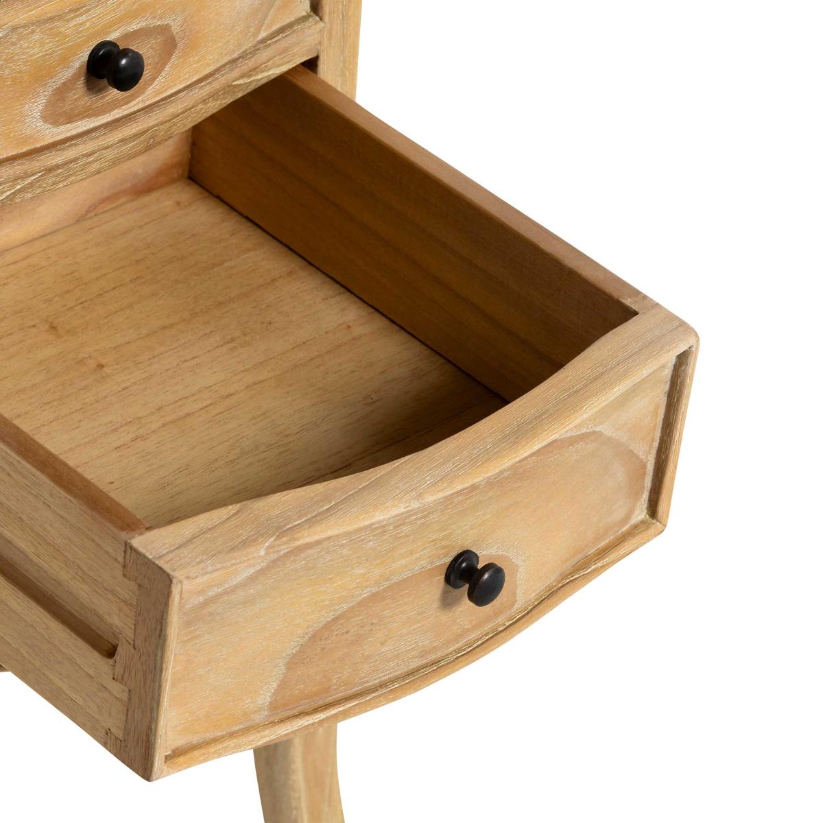 I’d describe this Cecile table as a versatile little piece that brings a soft, lived-in look to schemes from Scandi-inspired to coastal or country. Its gentle curves and natural finish add warmth without feeling overly ornate, so it sits equally well beside a pared-back platform bed or in a more eclectic, layered bedroom. For styling, keep the top clear of clutter by using one or two key items - a slim-profile lamp, a small ceramic vase or a neat stack of books. Tuck bedside essentials into the two drawers and layer in natural textures, such as a woven tray or a linen runner, to tie the look together while helping you stay organised.
