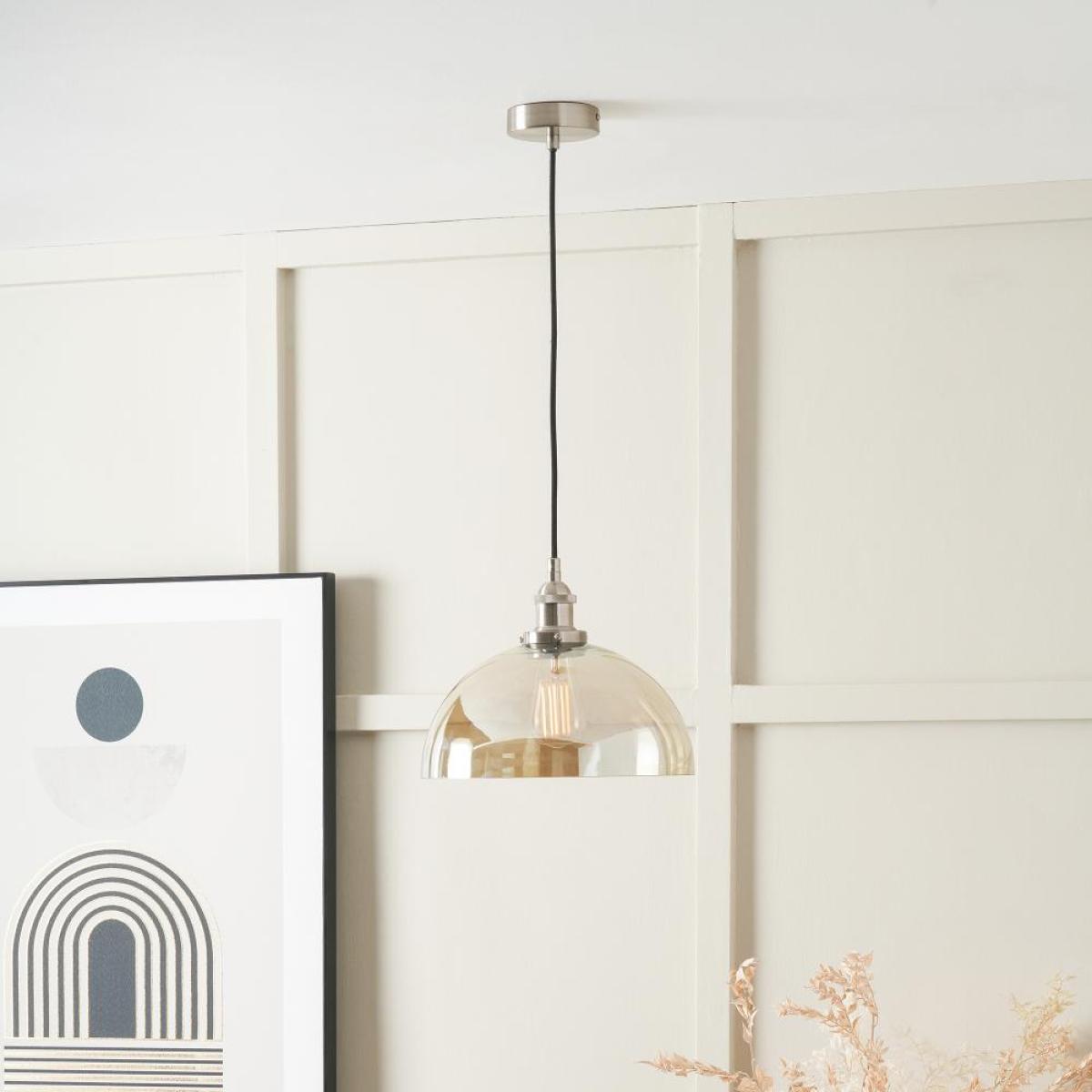 I love this pendant for its timeless, vintage appeal, particularly the antique silver finish paired with the lustre glass dome. It works particularly well in eclectic, industrial, or vintage-inspired interiors, adding character without overwhelming the space. Practical styling tips include hanging it in a dining area or over a kitchen island for a focal point, or in a reading nook for a touch of charm. When styling around it, consider pairing with other metallic accents or glass accessories to create a cohesive look. Keep the surrounding decor relatively simple to allow the pendant’s distinctive design to stand out, and ensure it's installed at the right height to maximise both form and function.