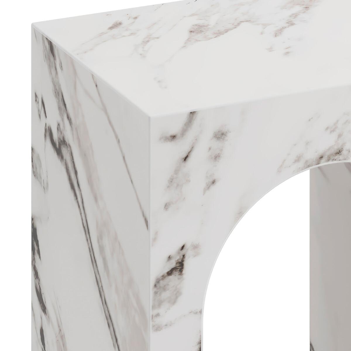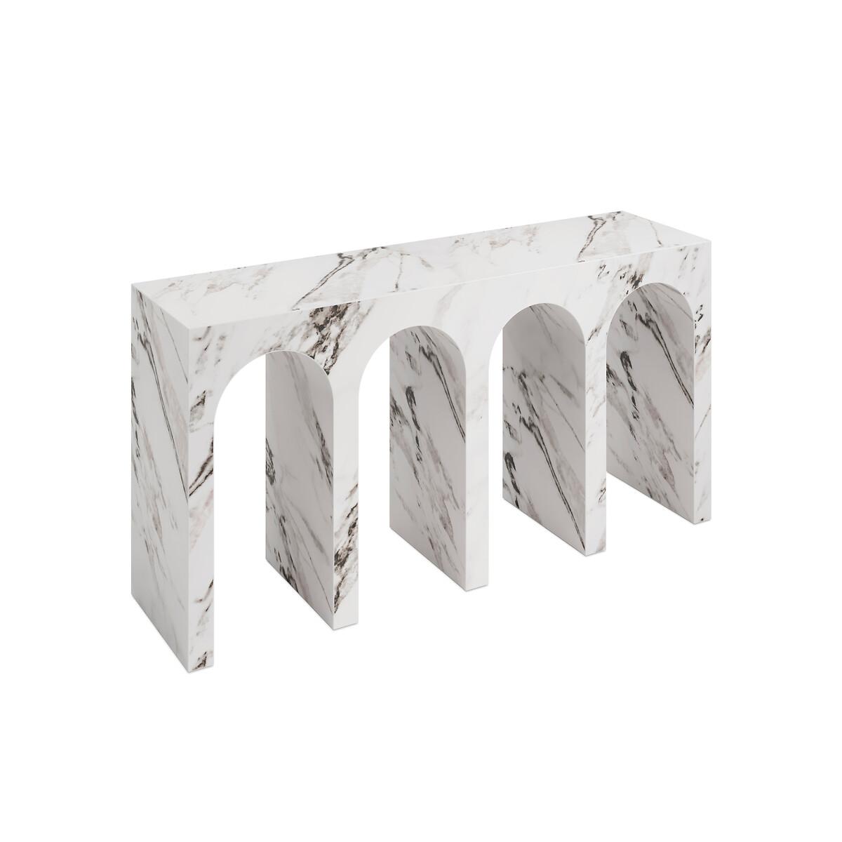 Bold form, luxe finish. Cecilia’s arched silhouette and Calacatta marble effect bring sculptural elegance to your space. The arches are highlighted by a pure white background and bold dramatic veining characteristic of luxurious Italian Calacatta marble. A matte finish creates timeless elegance, while its generous scale makes it a true statement piece -- designed to anchor the room with quiet confidence. Product Details• Large statement console table• Contemporary arched design• Calacatta Marble effect• Delivered fully assembled• 12 month manufacturers warranty• Care advice - Wipe clean with a soft cloth. Product Composition - ECC (Fibre Reinforced Cement)Product Dimensions - 40 cm x 150 cm x 76 cm , Weight - 52.12 KGPackage Dimensions - 158 cm x 85 cm x 49 cm, Weight 63.5 kg. Please note: this product cannot be be delivered to all Offshore Islands Northern Ireland or Republic of Ireland. This product will be dispatched by one of our trusted suppliers. You’ll be contacted by their selected courier about your delivery.