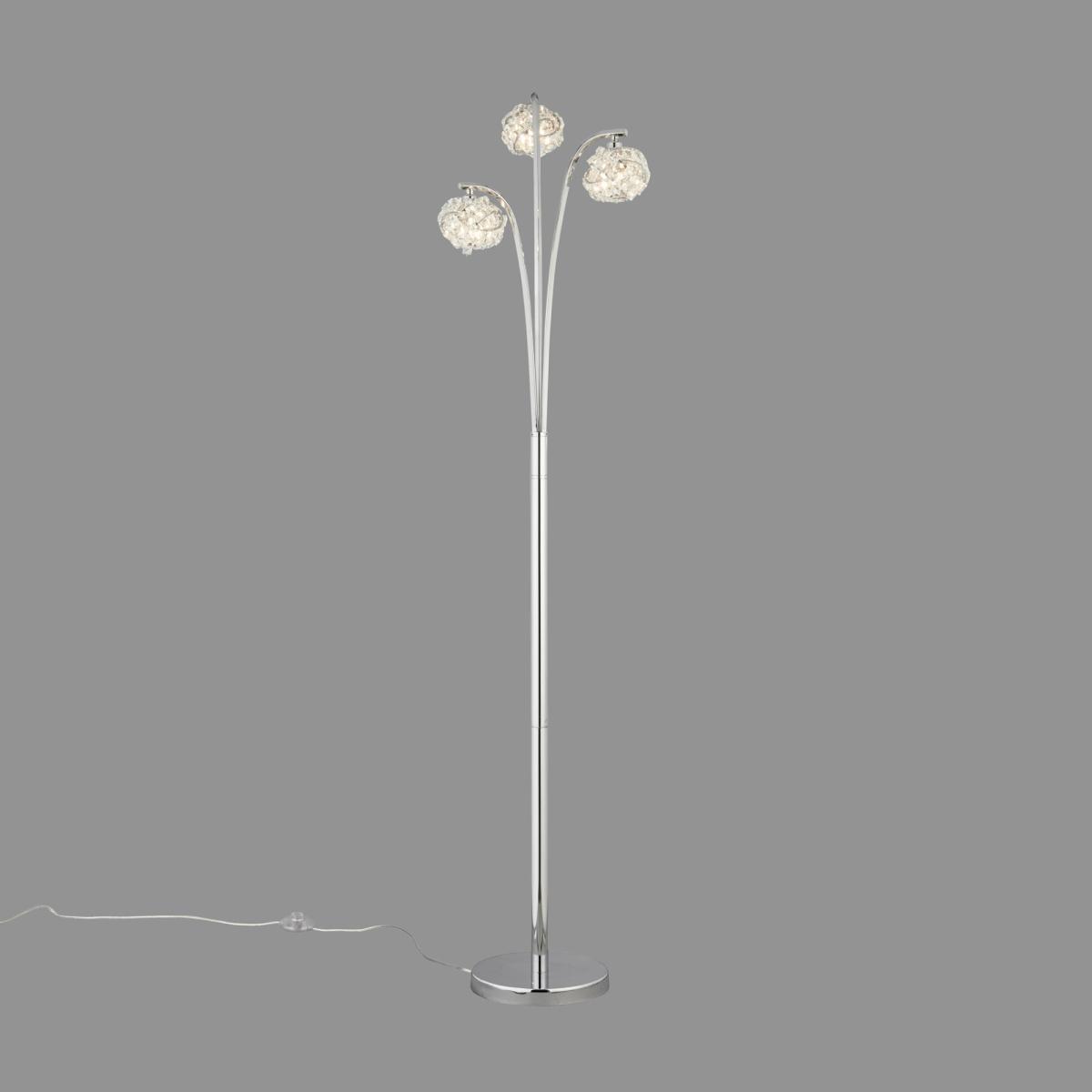 Made in a stylish and elegant design, this three light floor is perfect for adding some glitz and glamour to any room. With a qunique and intertwined design, this lamp is made from glass and steel with a chrome effect finish and is compatible with LED lamps.