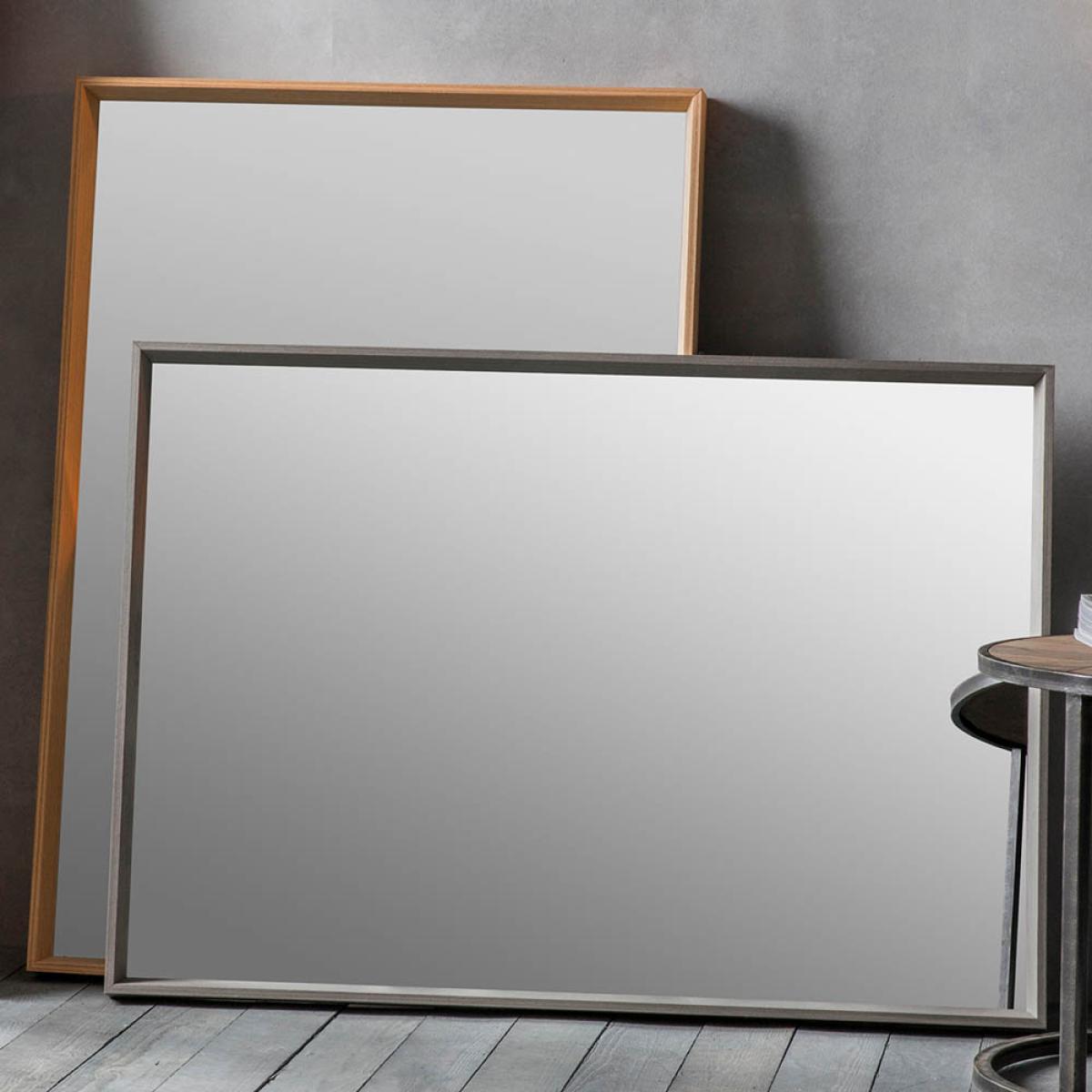 A modern collection of solid wood framed mirrors with subtle tones of oak veneer. Shape: Rectangle. Material: Glass, Wood. Colour/Finish: Grey. Mount Type: Wall.