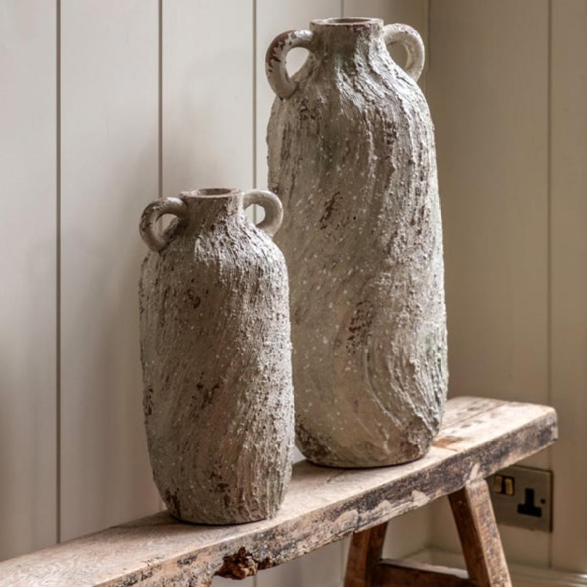* Metal with stone-effect finish * Urn style vase with handles * Available in two sizes The Awaroa Stone-Effect Vase from Cedar & Sage brings natural style to your interior. Its earthy tones and hand-crafted feel make it a perfect fit for bohemian or modern farmhouse styles. The urn-shaped design adds a timeless touch, whether displayed solo or filled with fresh greenery, and the clever stone-effect finish gives a rustic feel. Available in two sizes to suit different spaces and styling needs. A simple way to introduce texture and warmth to your home.