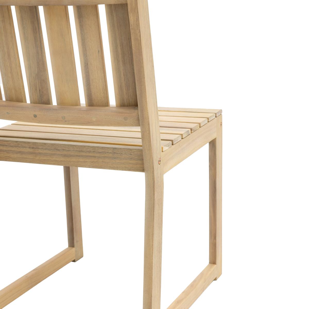 * Sleek and modern * Wooden frame * Weatherproof This dining chair offers the perfect combination of comfort and sleek design, ensuring a relaxed outdoor dining experience. Made from weather-resistant materials, it is built to withstand the elements and maintain its aesthetic appeal throughout the seasons. The chair’s minimalist design fits seamlessly with a variety of dining tables, adding sophistication to any outdoor dining setup while providing durable, comfortable seating for your guests.