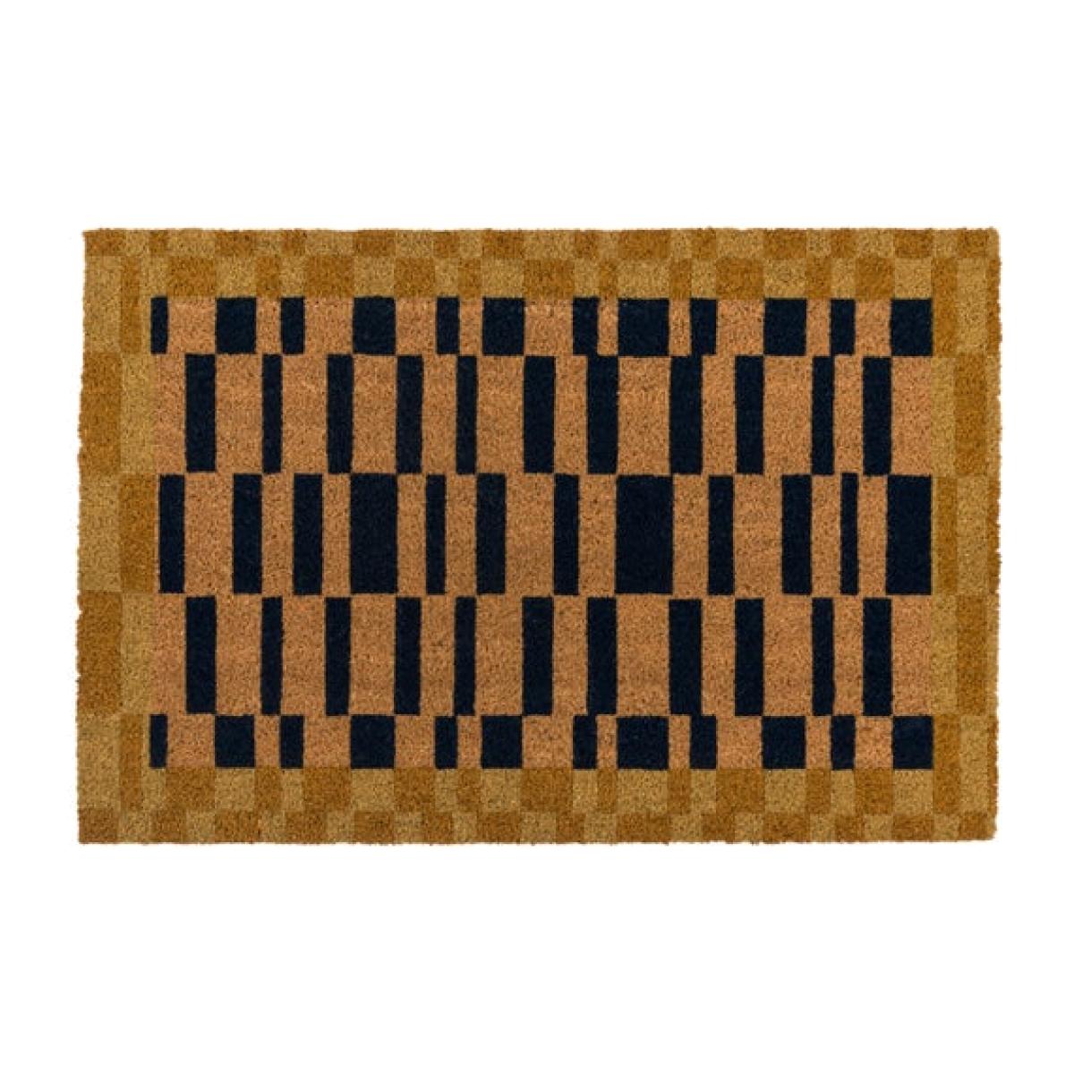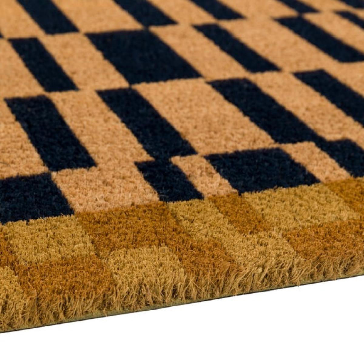 * Coir doormat * PVC backing * Suitable for indoors and outdoors Step into style with this geometric doormat. Its eye-catching black and natural colour scheme brings a modern edge to your entrance. Made from hard-wearing coir and finished with an anti-slip backing, it combines practicality with contemporary design.
