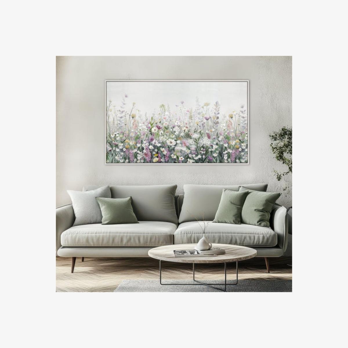 * Features a floral cascade design * Ideal for hallways or over furniture * Rectangle frame * Ready to hang This long rectangular canvas creates a flowing display of cascading blooms, perfect for adding floral detail to your space. The extended shape makes it a good fit for long walls, hallways or above furniture. Soft lines and layered petals give a sense of depth and movement. With its relaxed style and natural tones, it’s an effortless way to introduce floral art into your home. Works well on its own or as part of a wider display.