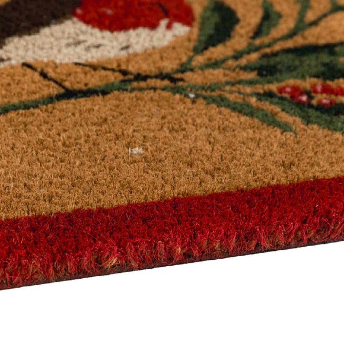 * Coir doormat * PVC backing * Suitable for indoors and outdoors Add a delightful festive touch to your doorstep with this friendly robin doormat. Featuring a charming robin perched on holly alongside a welcoming message, this mat brings warmth and character to your home. Its anti-slip backing ensures stability for added convenience.