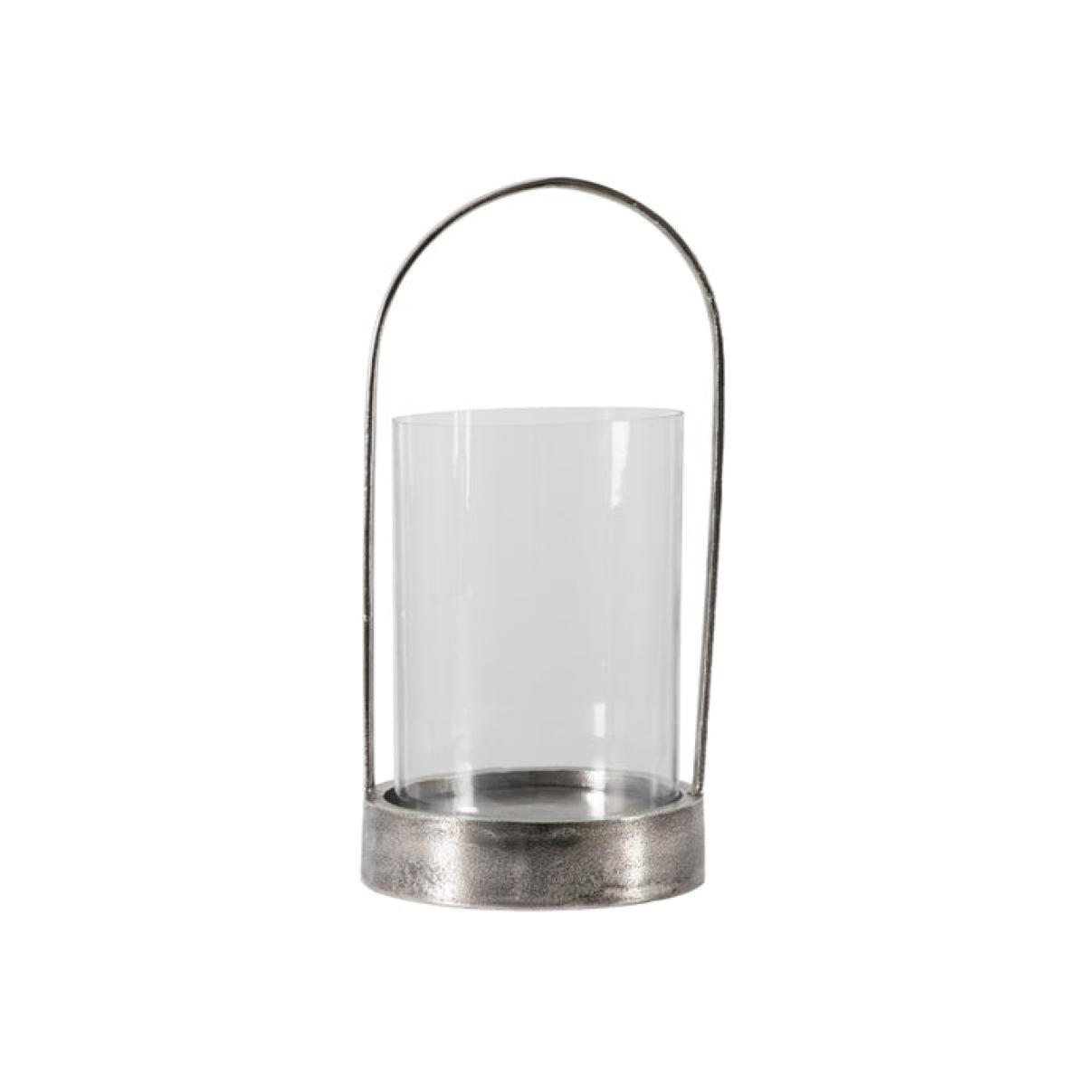 * Simple arched design * Antique nickel coloured metal * Glass cylinder to enclose candles * Suitable for pillar candles (not included) Add a distinctive touch to your décor with the Linton Hurricane Candle Holder from Cedar & Sage. Featuring an antique nickel-effect metal frame and a simple arched design, it brings understated style to any setting. The glass cylinder safely encloses your candle(s) (not included) while allowing the light to glow softly through. Ideal for use all year round, whether indoors or in the garden, its timeless finish and unique shape make it a versatile piece for any home. A stylish way to enjoy candlelight with a classic twist.