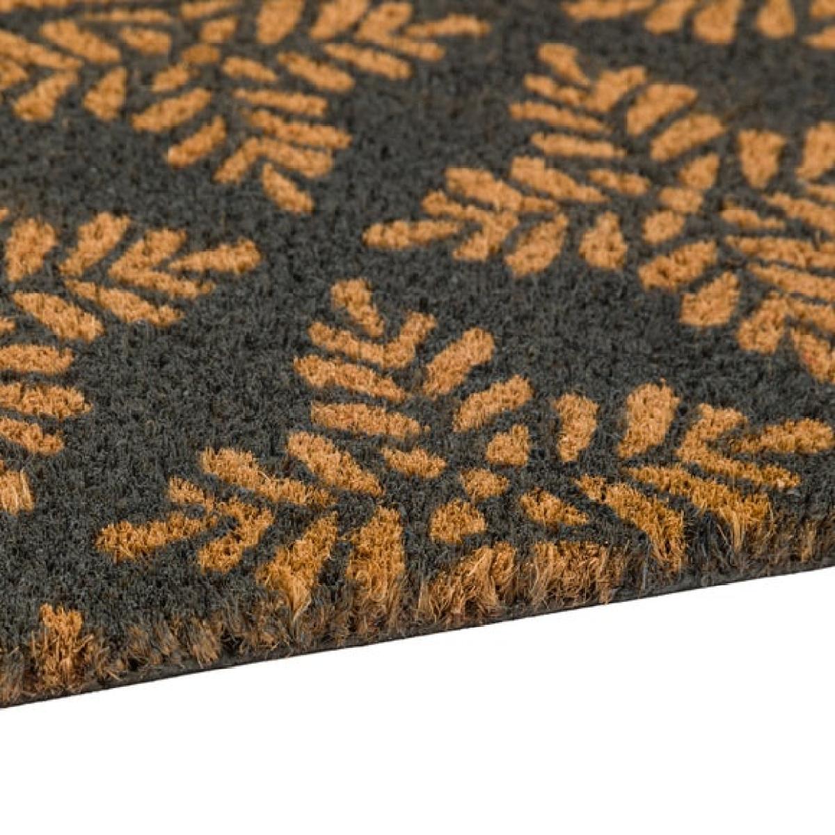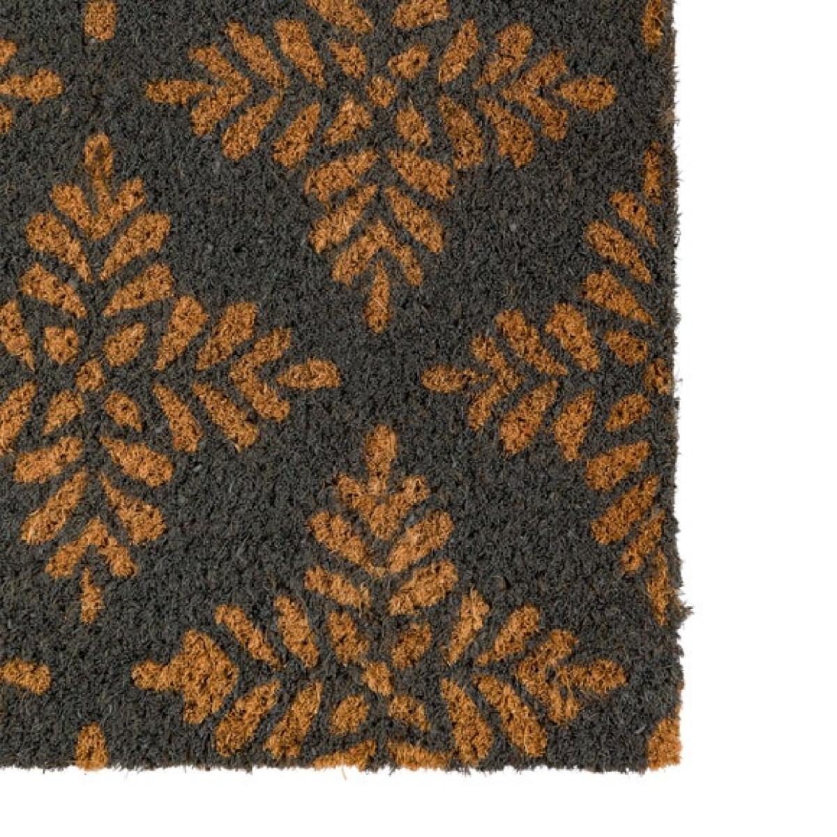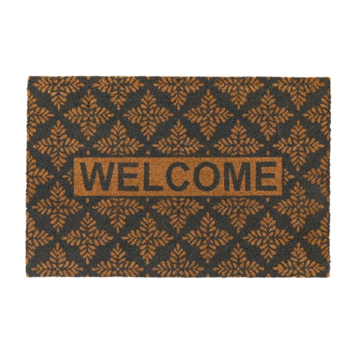 * Coir doormat * PVC backing * Suitable for indoors and outdoors Introduce a sophisticated look with this 'welcome' doormat. Its intricate design and charcoal tones frame a classic welcome message, creating a stylish entrance. Finished with an anti-slip backing, it offers stability and durability.