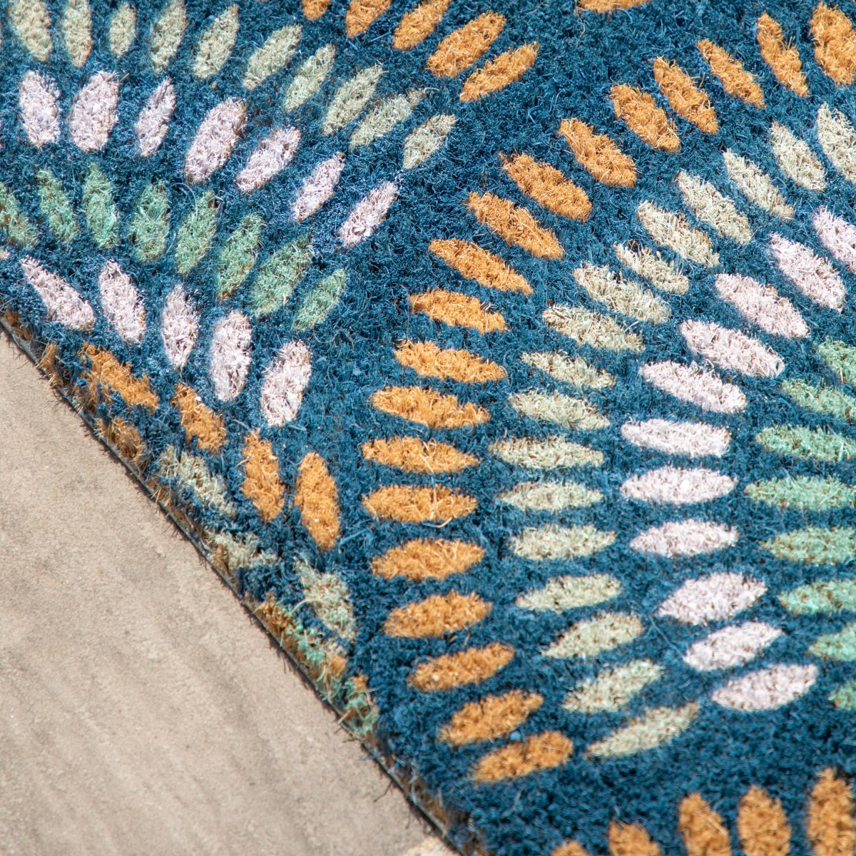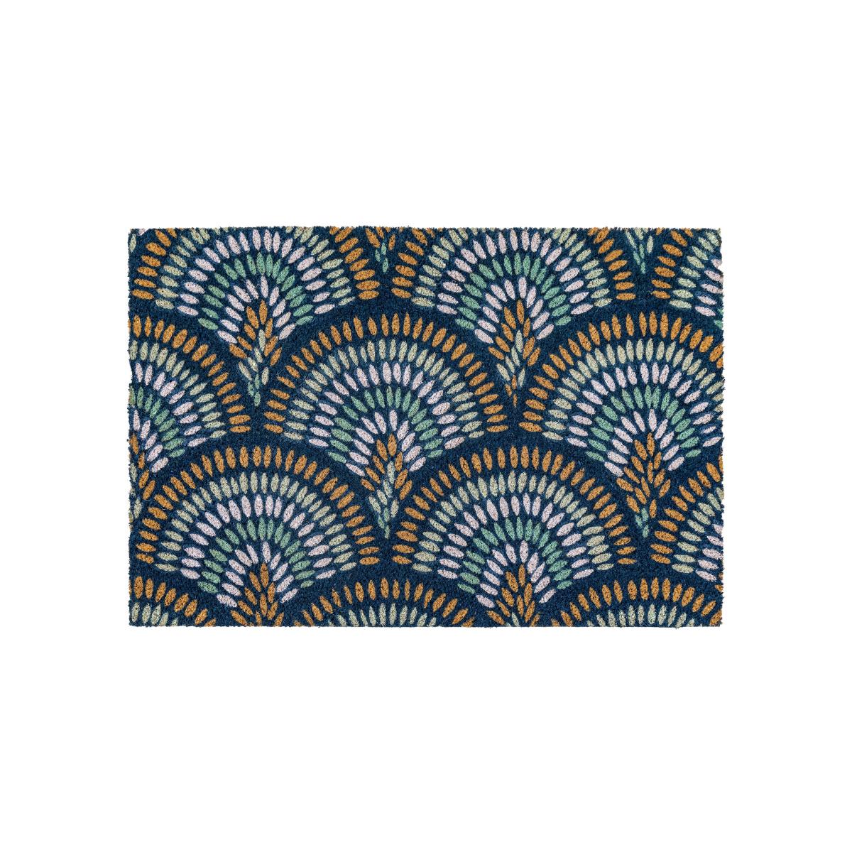 A peacock inspired take on the classic rainbow. This doormat is ready to be popped down for when you enter your house so you can clean any dirt off your shoes.