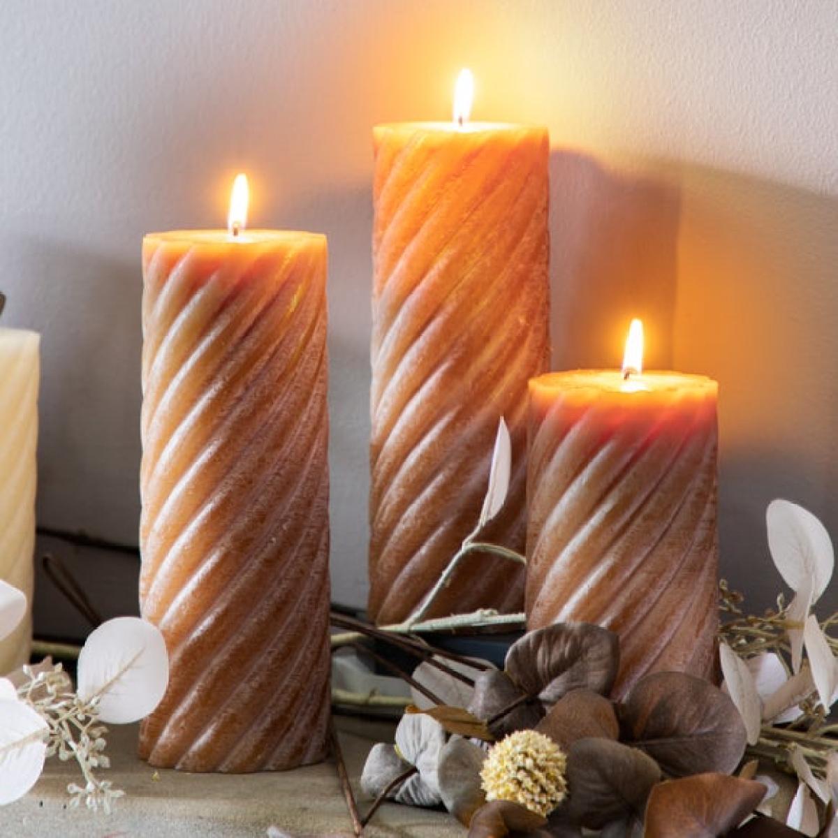 * Set of 2 candles * Elegant twist design * Vanilla scented * Choice of colours * Three sizes available Set the mood with the Vanilla Twist Pillar Candles from Cedar & Sage. Each candle features a classic pillar shape with a modern twist design, available in amber, sage or ivory to suit your style. Infused with a soft vanilla scent, they’re perfect for relaxing evenings or stylish gatherings. Choose from three sizes to complement any holder or lantern. With a burn time of up to 70 hours, they offer lasting ambience, making them a simple way to bring warmth and elegance to your space.