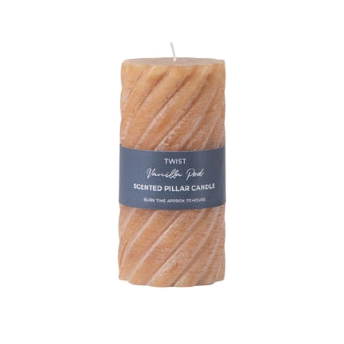 * Set of 2 candles * Elegant twist design * Vanilla scented * Choice of colours * Three sizes available Set the mood with the Vanilla Twist Pillar Candles from Cedar & Sage. Each candle features a classic pillar shape with a modern twist design, available in amber, sage or ivory to suit your style. Infused with a soft vanilla scent, they’re perfect for relaxing evenings or stylish gatherings. Choose from three sizes to complement any holder or lantern. With a burn time of up to 70 hours, they offer lasting ambience, making them a simple way to bring warmth and elegance to your space.