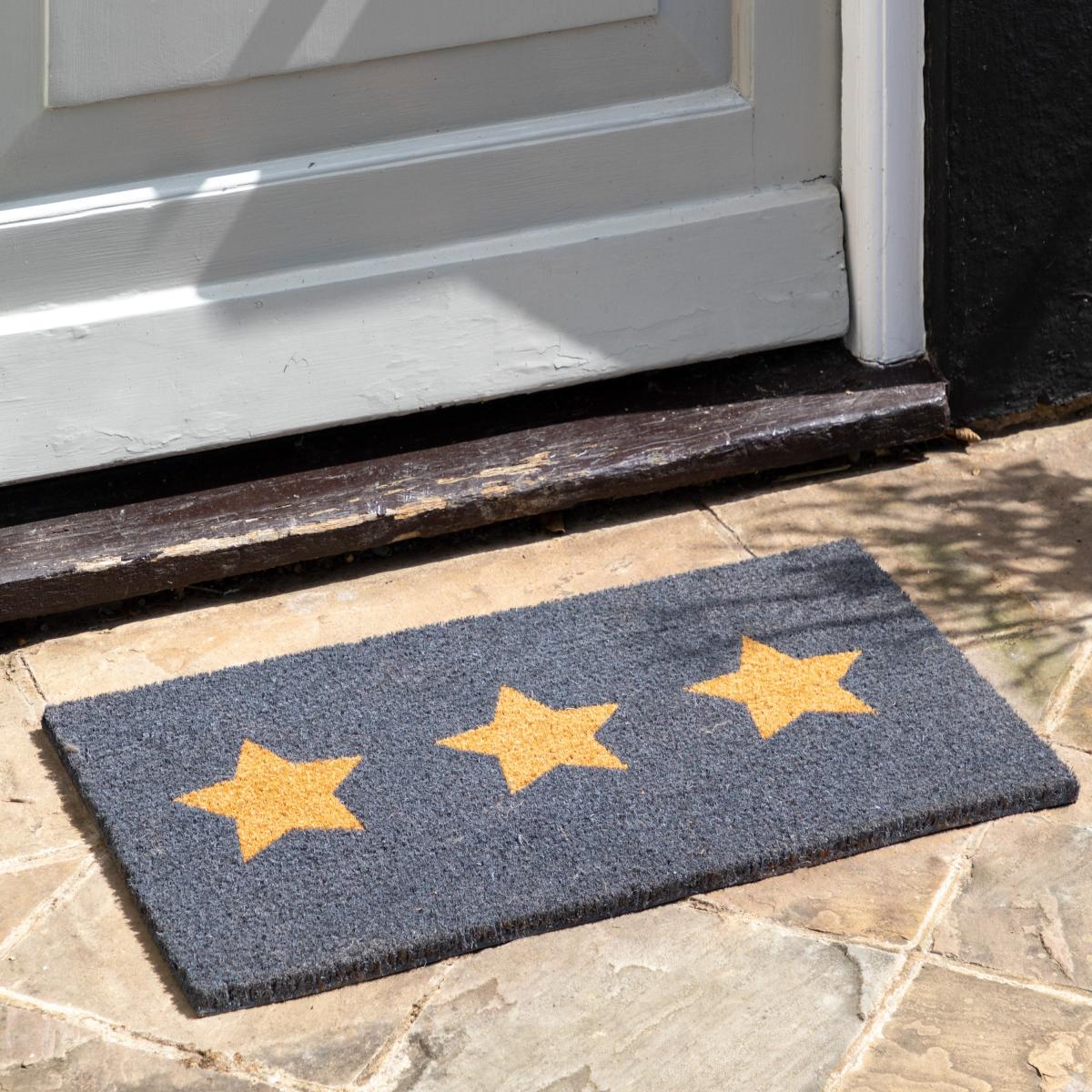 Cedar & Sage Star Trio Coir Doormat Grey/Yellow