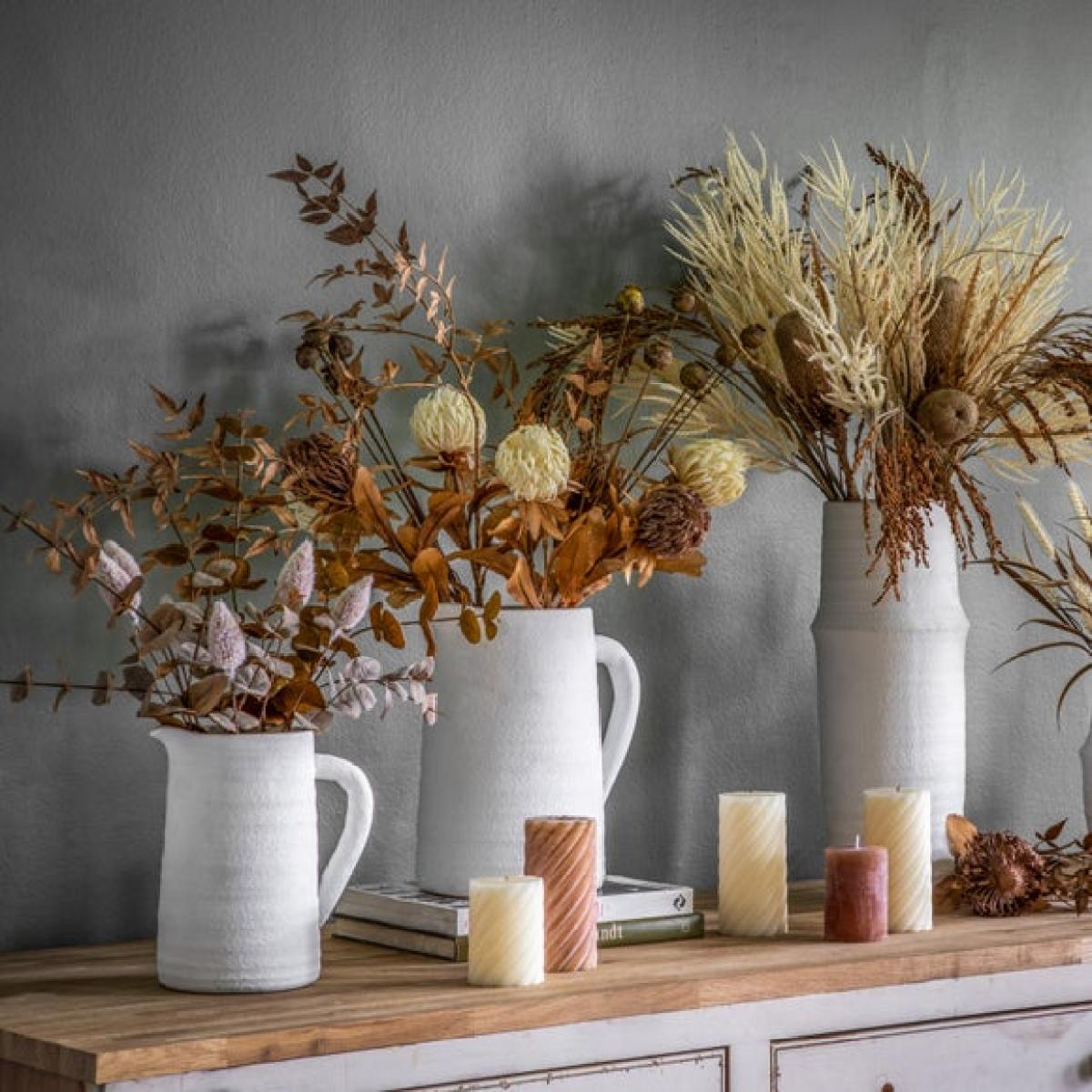 * Classic jug shape * Textured finish * Two sizes available Lighten up your space with the Stenson White Jug Vase from Cedar & Sage. Its white finish and interesting textured surface make it a fresh addition to any room. The jug shape adds character, whether styled with floral arrangements or left as a standalone piece. Available in two sizes to suit different settings, it's ideal for shelves, tables or windowsills. A simple way to bring brightness and charm to your décor.