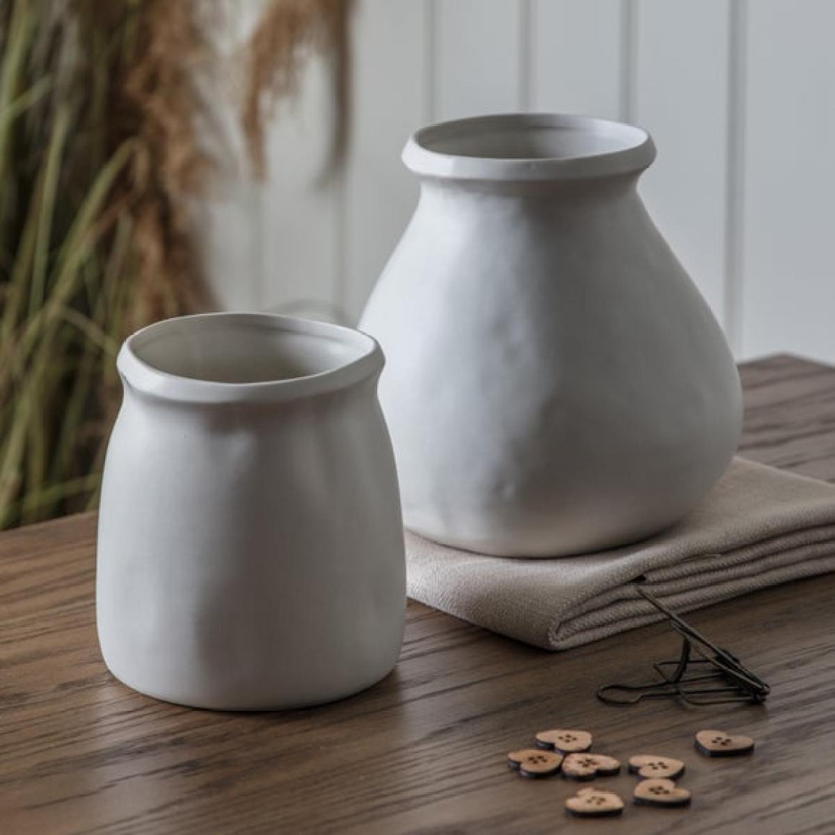 * Classic milk churn shape * Soft cream glaze * Glossy finish Understated and versatile, the Cedar & Sage Tahara Stoneware Vase brings quiet elegance to any room. Its soft cream tone and glossy finish offer a clean, neutral look that complements a wide range of interior styles. The simple milk churn silhouette adds a subtle nod to rustic design without overpowering your space. Whether displayed alone or filled with seasonal stems, it’s a timeless piece that blends effortlessly into your home; ideal for those who appreciate classic style with a gentle touch.