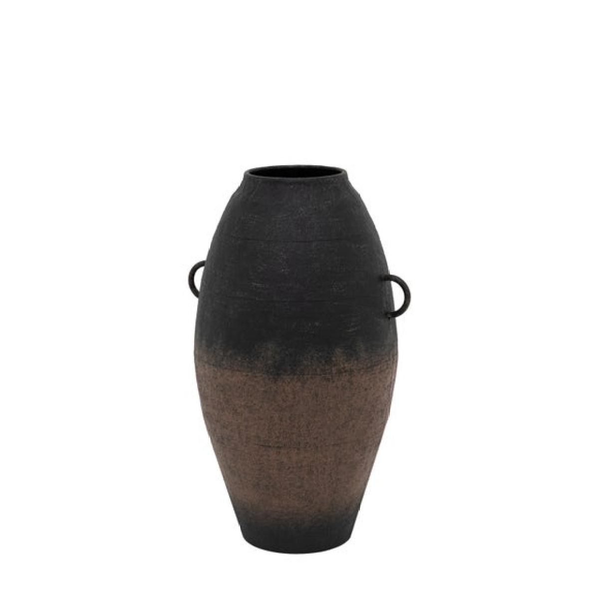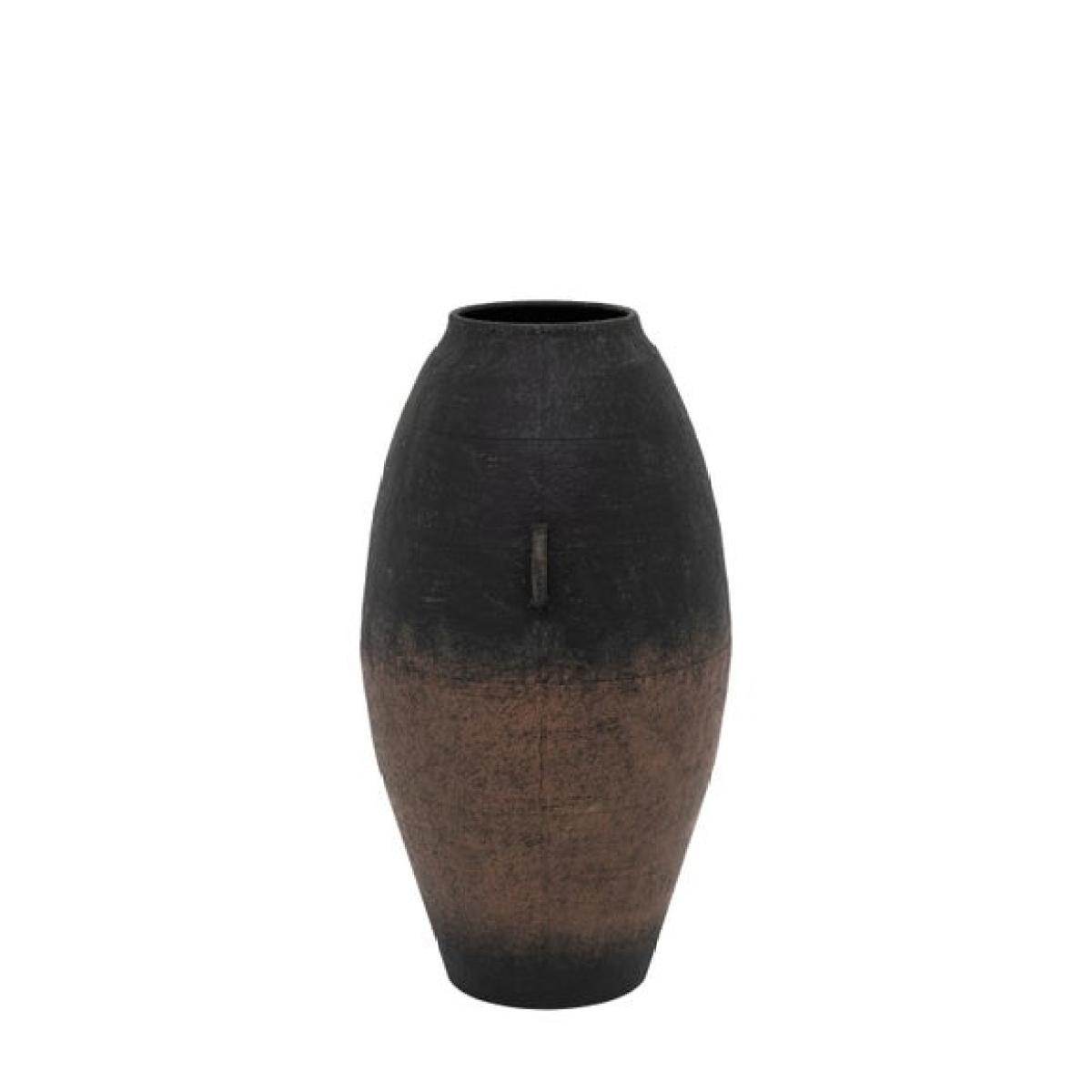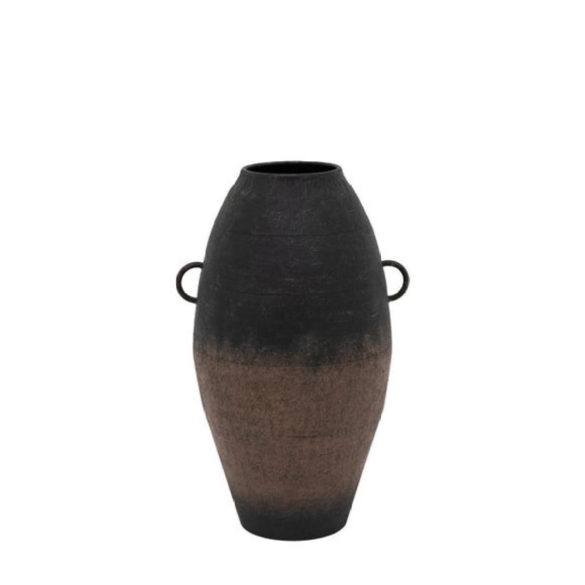 * Textured metal vase * Urn style with tapered shape * Ombre colour effect The Teide Urn Vase from Cedar & Sage is a striking blend of form and finish. With two handles and a tapered silhouette, it brings sculptural elegance to any space. The ombre effect transitions from deep charcoal to warm, weathered brown, adding depth and character, and its textured metal surface catches the light beautifully, making it a standout piece whether styled solo or with dried stems. Ideal for modern, rustic or industrial interiors, it's a bold yet versatile addition to your décor.