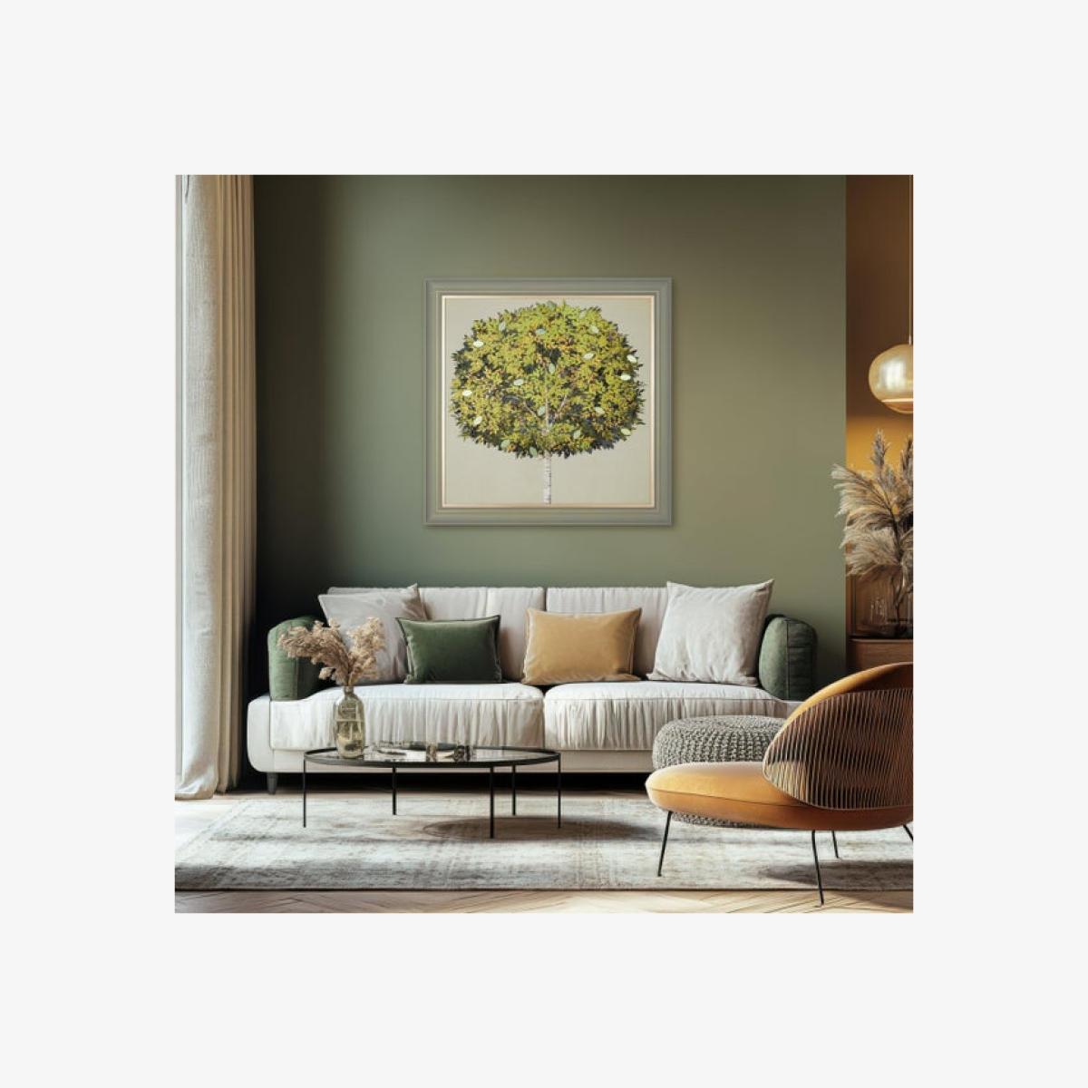 * Realistic tree design * Textured bark and layered leaves * Neutral background to enhance artwork details * Works well with a range of interiors Bring a touch of nature indoors with this beautifully framed tree artwork. The lifelike detail in the foliage and bark gives it a natural depth, while the soft background keeps things calm and balanced. A grey-green frame with a gold inner edge adds a refined finish that works well in both modern and traditional spaces. Whether it’s for a hallway, lounge or study, this piece adds interest without taking over. It’s a simple way to bring the outdoors in, all year round.