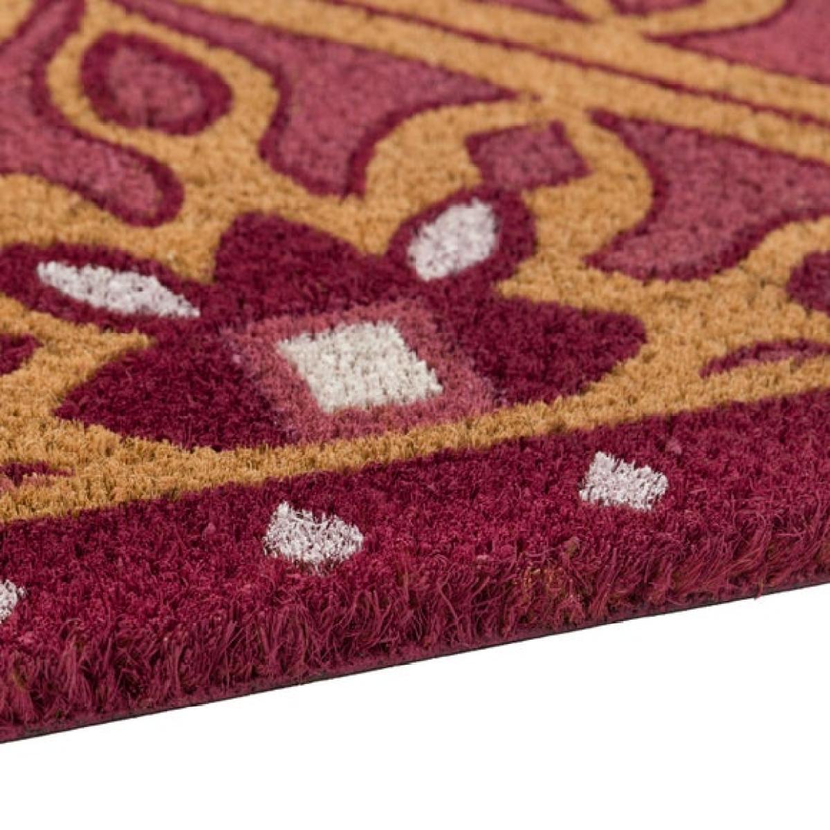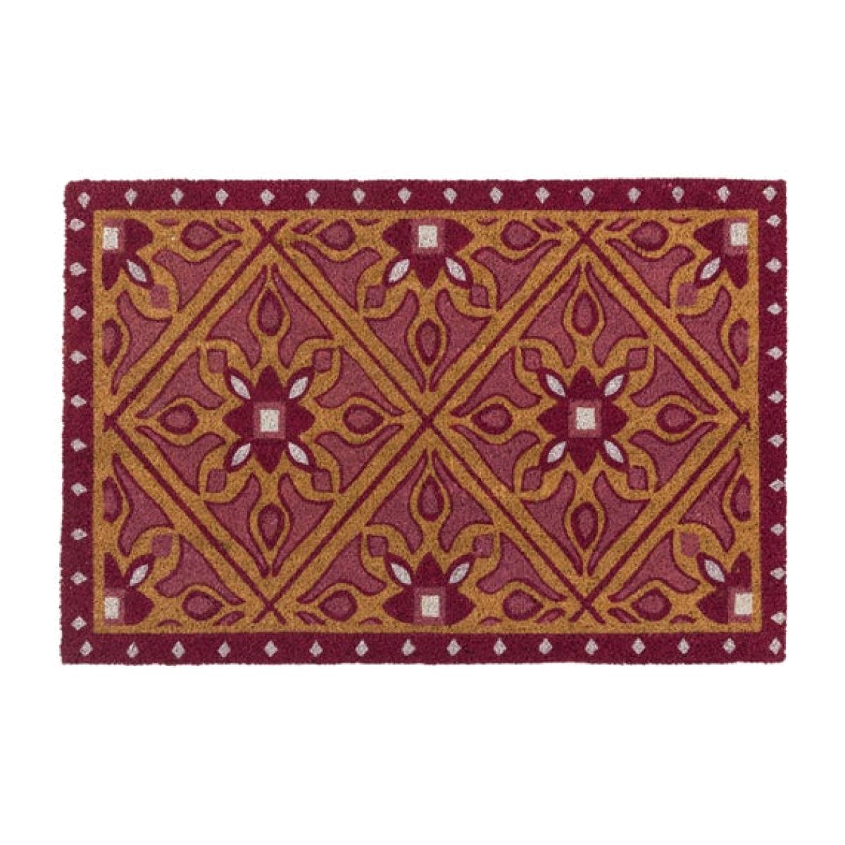 * Coir doormat * PVC backing * Suitable for indoors and outdoors Step into style with this  warm and whimsical doormat. Its playful geometric pattern and warm pink tones create a welcoming look for any entrance. Made from coir with an anti-slip backing, it offers durability and practicality.