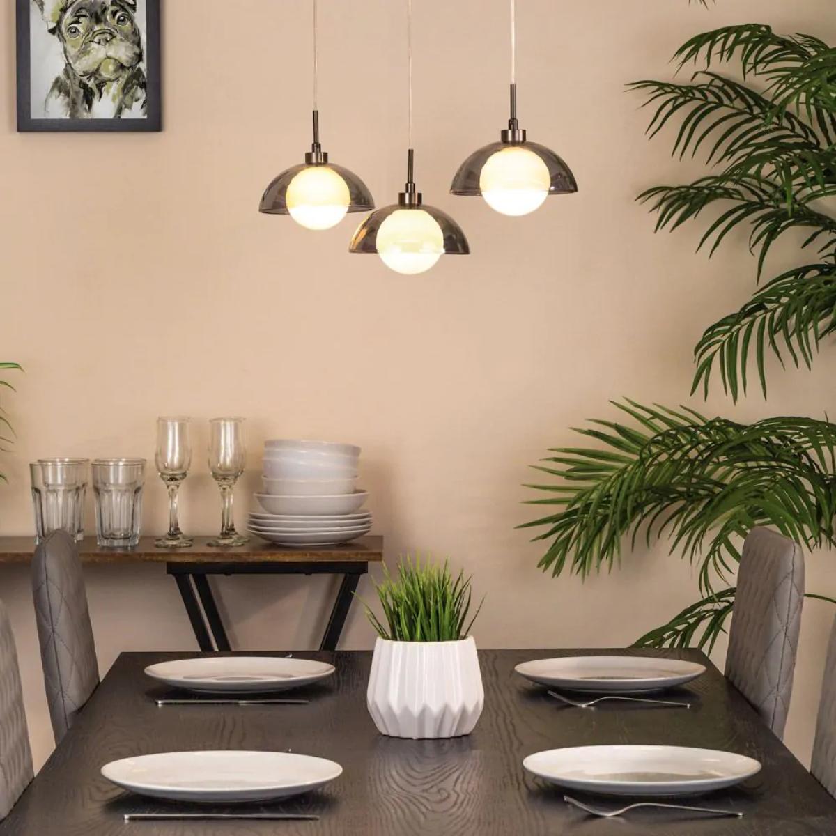 I really like this pendant bar with smoke shades for its versatile and modern appeal. Its sleek black chrome finish makes it a great addition to contemporary or minimalist interiors, while the smoke glass shades add a subtle warmth, preventing it from feeling too industrial. It's ideal for over kitchen islands, dining tables, or even in a living space where you want to create a stylish but understated statement. As a styling tip, hang it at varying heights for an eclectic look or keep it uniform for a cleaner, more streamlined aesthetic. Pairing with other black or metallic elements can really help to unify the space, making this pendant fitting for a range of interior styles from modern to transitional.