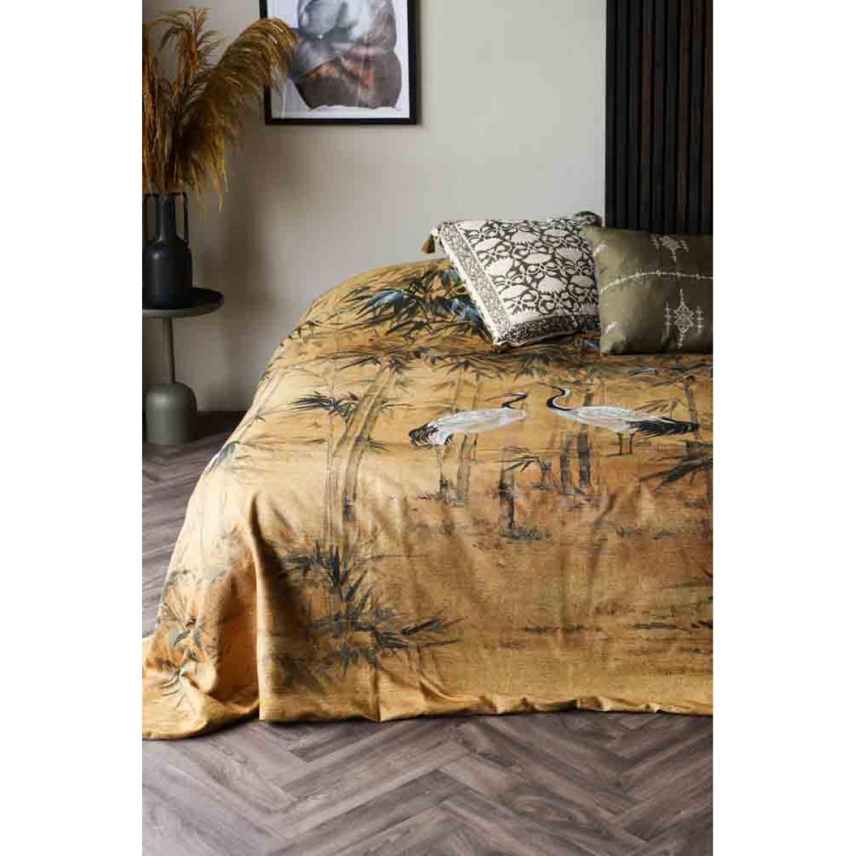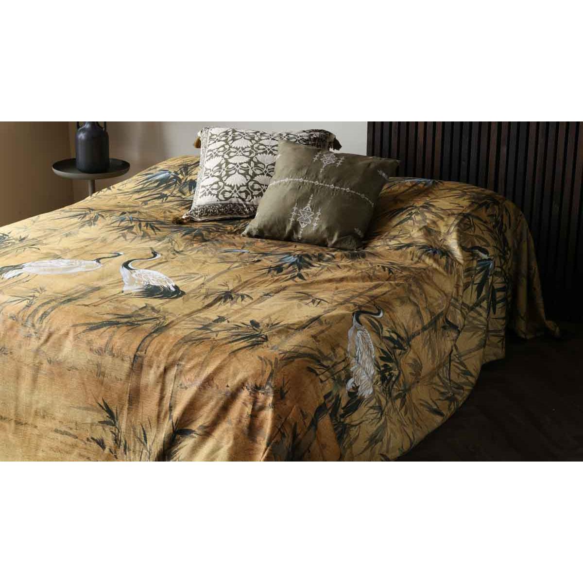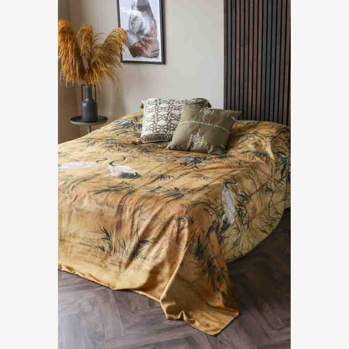 About The Cedomin Quilt Tapestry Throw In Clow The Cedomin Quilt Tapestry Throw in Clow will make an eye-catching statement in your interior scheme. Measuring 280cm in height and 280cm in width, this large throw blanket showcases a scene of beautiful crane birds in a forest of bamboo. Featuring an earthy yellow backdrop, this Chinoiserie-style throw is made from heavy cotton, viscose and linen. Offering a range of styling options, this cotton throw is large enough to be used to create an extraordinary wall mural that fills an entire large wall in your home. Why We Think You’ll Love The Cedomin Crane Chinoiserie Throw In Clow Showcasing a serene, meditative design, this picturesque bed throw is perfect for injecting a naturistic atmosphere into your existing scheme. What’s more, its enchanting pattern is expressed through the mixture of forms and earthy tones making it a divine piece of art in and of itself, so what’s not to love?! Where To Style The Cedomin Crane Chinoiserie Tapestry In Clow Create a dreamy sleeping space by displaying this cotton tapestry as a soft furnishing on top of your bed styled with decorative pillows for added style and comfort. Its glorious design will inject a unique charm into the space showcasing that much loved wow factor from the moment you enter the room. Alternatively, this yellow throw is large enough to be styled as a spectacular wall tapestry. We can guarantee it’ll create dramatic impact within your space.