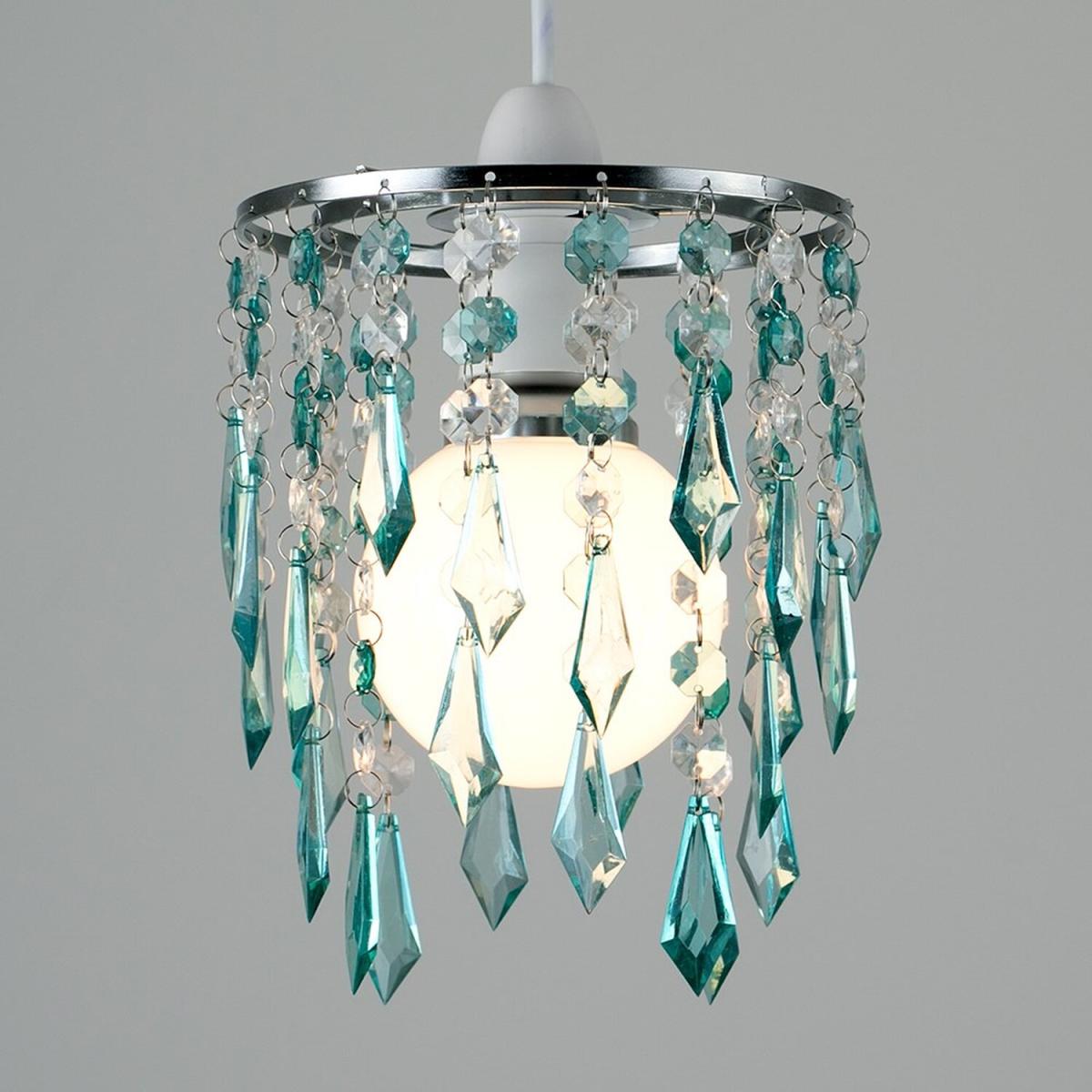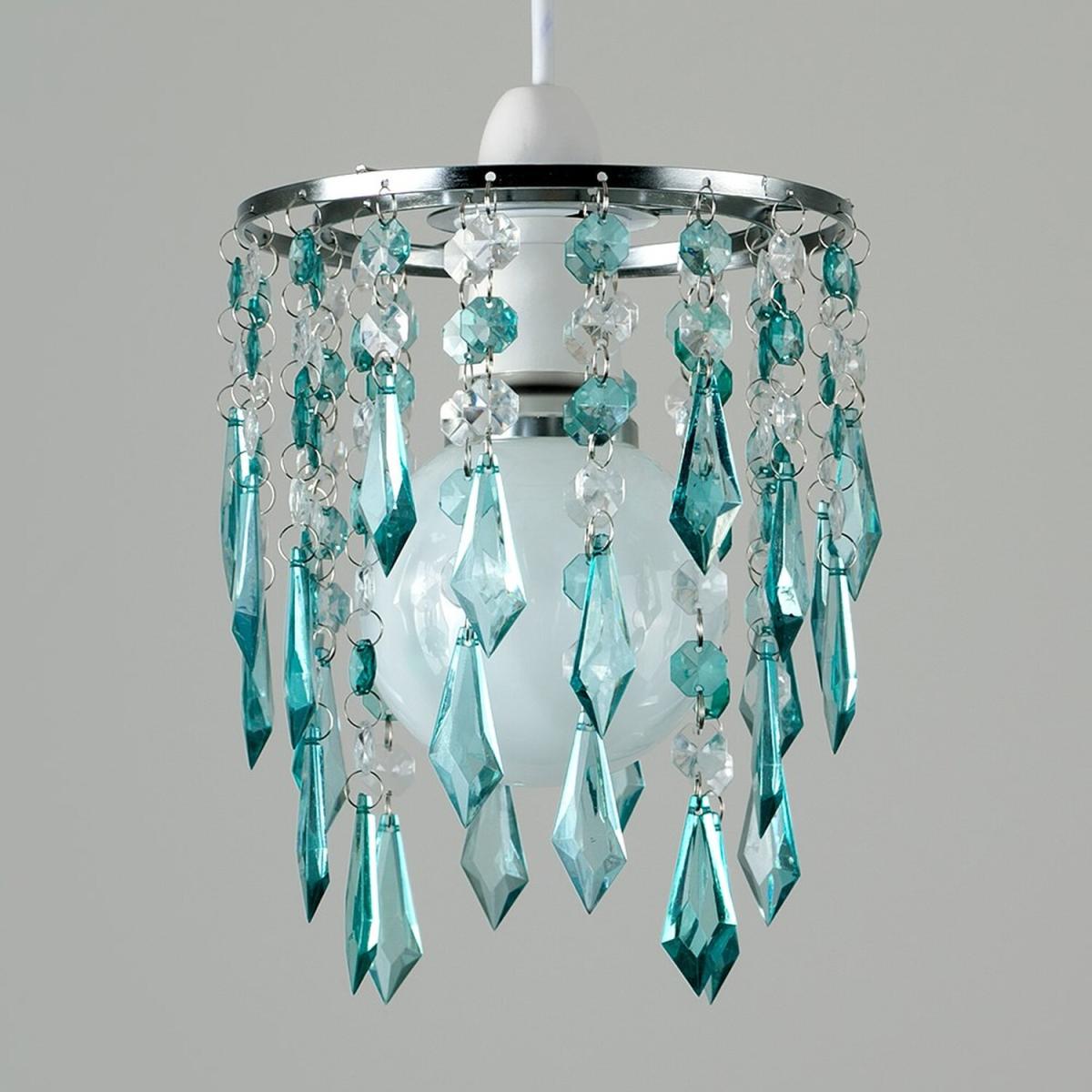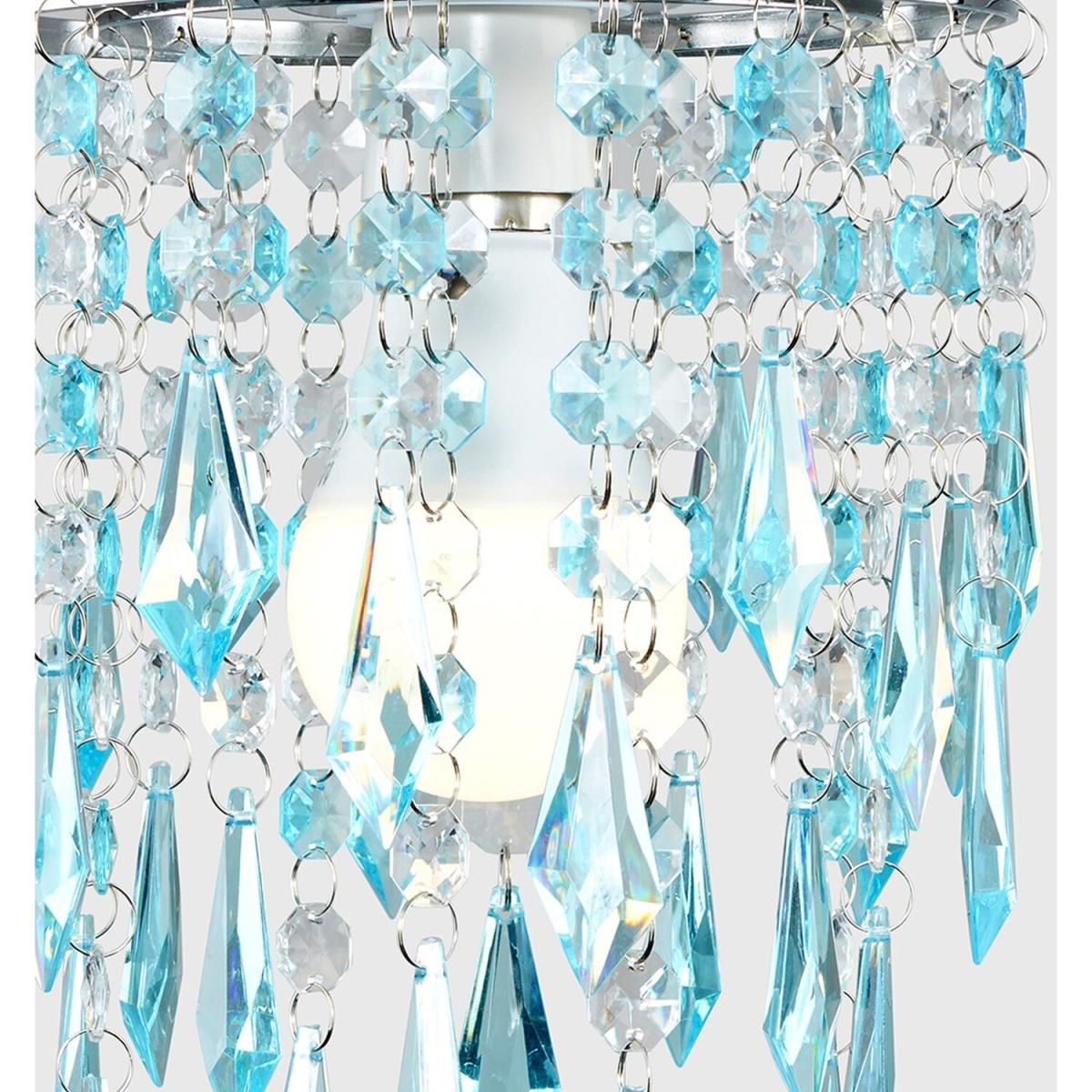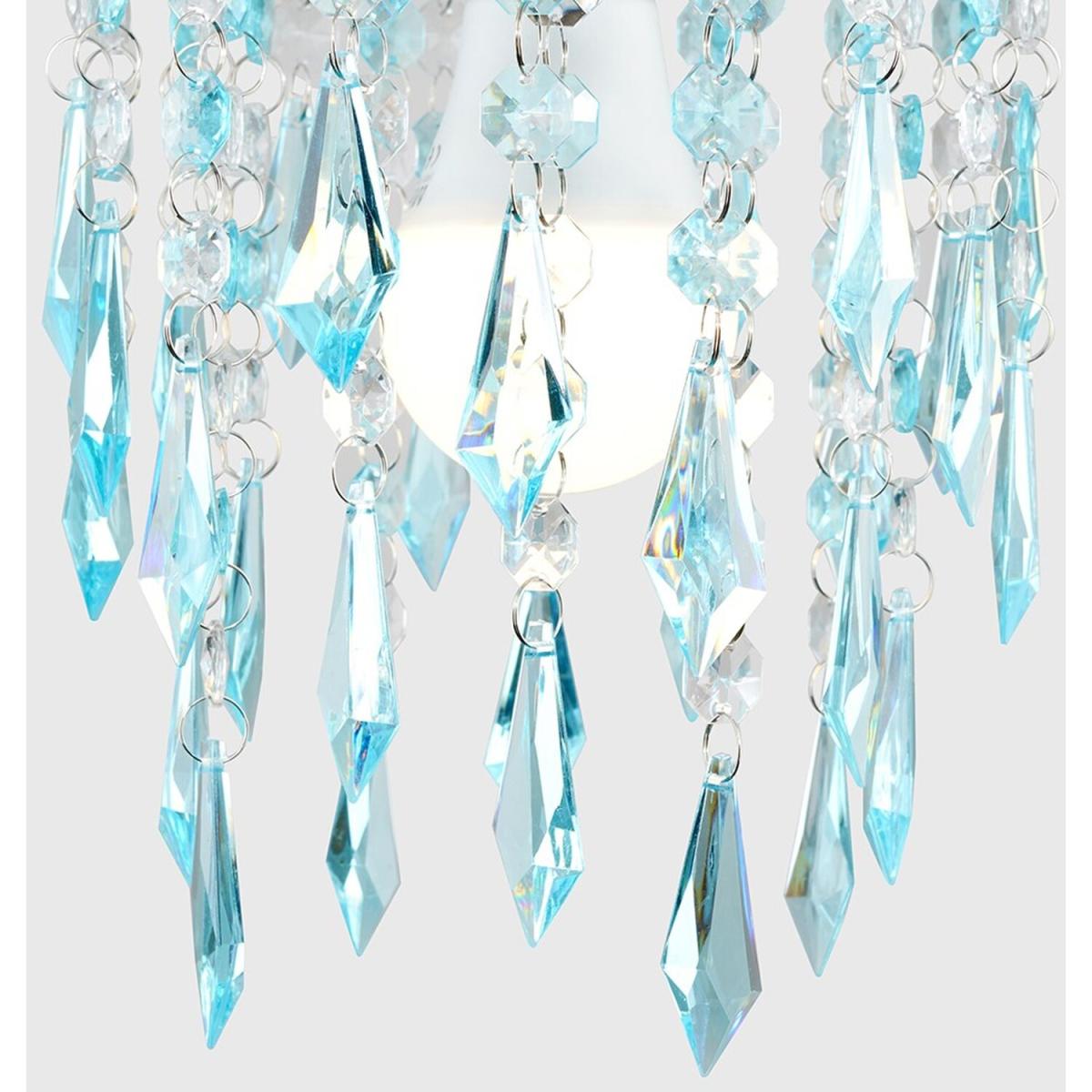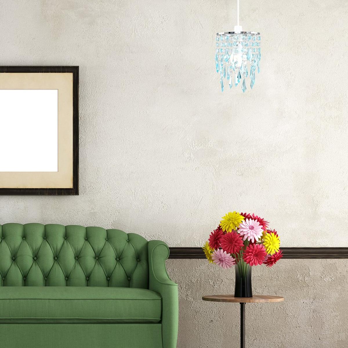 Beautiful two tiered ceiling pendant light shade chandelier. Features cascading, light-reflecting, teal and clear acrylic jewel effect droplets, suspended from a silver chrome metal frame, which cast the light beautifully around the room. Easily fits to your standard ceiling light socket - no wiring required. With a variety of colours available, this elegant lampshade goes perfectly with almost any style of interior design. Ideal for lounges, dining rooms, bedrooms and hallways. A non electric ceiling pendant shade is a quick and economical way to update your room in seconds! 1 x 60w BC B22 GLS bulb is required - not supplied.