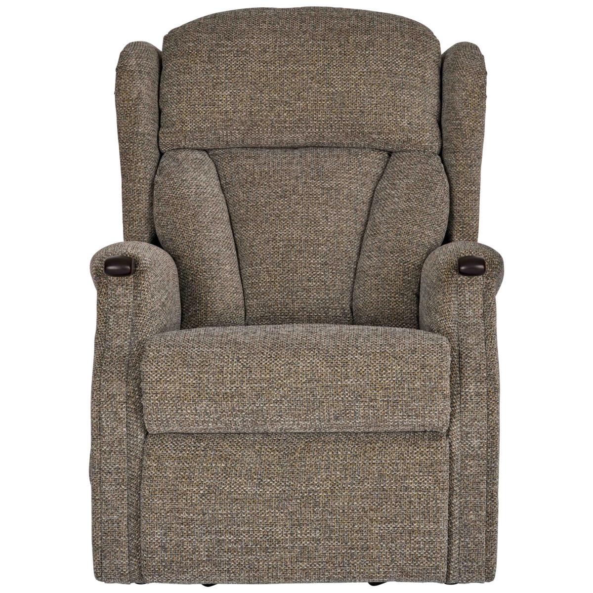 The Canterbury has been designed with a supportive lateral fibre back for extra comfort with the reassurance of our solid wooden knuckle design. The solid beech wood ‘grab’ handle is integrated in to the chair frame for more durability. If preferred the Canterbury can be manufactured without a knuckle. Canterbury fabric models come with Mammoth Medical Grade™ Foam Seating Technology and all models are available in any Celebrity fabric or leather. Mammoth Medical Grade™ foam technology- Fabric Models Only. Mammoth’s naturally cooling Medical Grade™ foam is proven to relieve pressure, deliver postural support and regulate temperature. That means greater comfort, fewer aches and pains, and faster recovery. There’s no other seating technology available in the consumer market that supports recovery, rehabilitation and relaxation in this way. Mammoth’s integrated Medical Grade™ foam cushion features PostureCell™ Technology with cooling air channels. Together, these innovations: • Improve ease of movement • Increase pressure relief, support and circulation • Relieve pain and discomfort • Reduce risk of falling and injury • Help prevent hip locking when sitting/standing Motor Actions: Single Motor Riser Recliner- The Single Motor action allows the footrest to raise to its top level, the chair back will then start to recline. The rising action will tilt the chair to enable the user to alight or access the chair with ease. Dual Motor Riser Recliner- The Dual Motor action allows the footrest and the chair back to be operated independently to create your perfect sitting position. The rising action will tilt the chair to enable the user to alight or access the chair with ease. Dimensions Height: 117cm Width: 84cm Depth: 94cm All screens vary in colour reproduction and whilst every effort has been made to display the colour as accurately as possible it is for guidance only.
