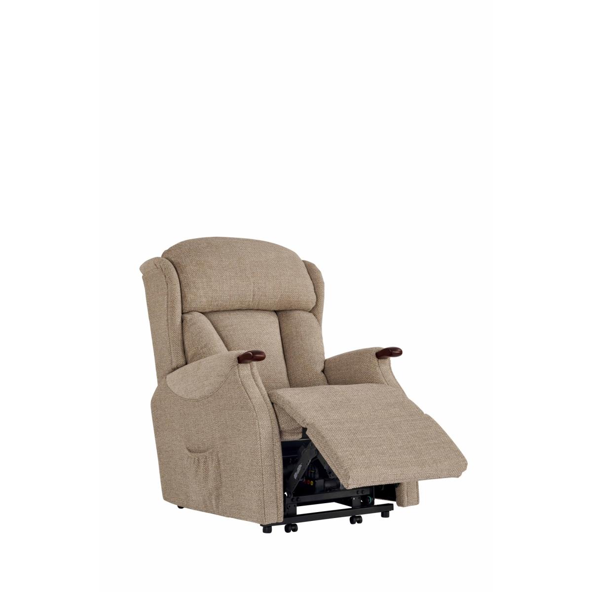 The Canterbury has been designed with a supportive lateral fibre back for extra comfort with the reassurance of our solid wooden knuckle design. The solid beech wood ‘grab’ handle is integrated in to the chair frame for more durability. If preferred the Canterbury can be manufactured without a knuckle. Canterbury fabric models come with Mammoth Medical Grade™ Foam Seating Technology and all models are available in any Celebrity fabric or leather. Mammoth Medical Grade™ foam technology- Fabric Models Only. Mammoth’s naturally cooling Medical Grade™ foam is proven to relieve pressure, deliver postural support and regulate temperature. That means greater comfort, fewer aches and pains, and faster recovery. There’s no other seating technology available in the consumer market that supports recovery, rehabilitation and relaxation in this way. Mammoth’s integrated Medical Grade™ foam cushion features PostureCell™ Technology with cooling air channels. Together, these innovations: • Improve ease of movement • Increase pressure relief, support and circulation • Relieve pain and discomfort • Reduce risk of falling and injury • Help prevent hip locking when sitting/standing Motor Actions: Single Motor Riser Recliner- The Single Motor action allows the footrest to raise to its top level, the chair back will then start to recline. The rising action will tilt the chair to enable the user to alight or access the chair with ease. Dual Motor Riser Recliner- The Dual Motor action allows the footrest and the chair back to be operated independently to create your perfect sitting position. The rising action will tilt the chair to enable the user to alight or access the chair with ease. Dimensions Height: 109cm Width: 77.5cm Depth: 89cm All screens vary in colour reproduction and whilst every effort has been made to display the colour as accurately as possible it is for guidance only.