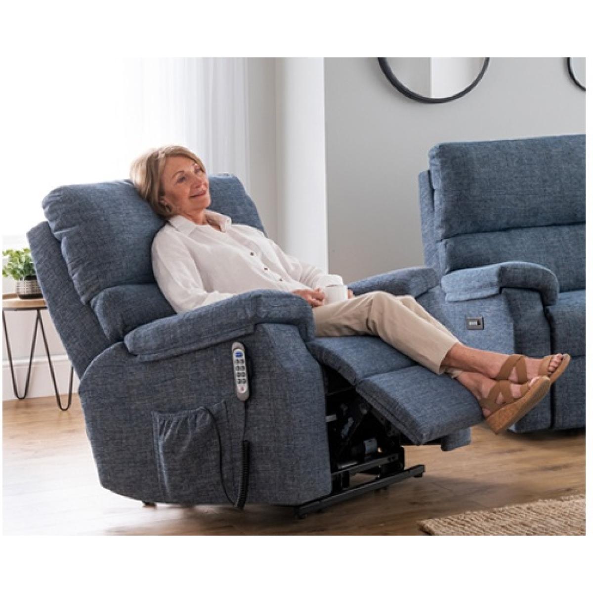 The Celebrity Newstead Cloud Zero Recliner Chair is a contemporary design offering superb comfort and support from the high back cushion detail and the pad over Chaise design. Which is available with Innovative power headrest and lumbar support options on the power recliner models. Providing the ultimate action suite in a modern, comfortable design, with wide two-cushion seat back on the 3-seat settee. Aquaclean® technology is a revolutionary fabric treatment that allows you to clean stains using water only. This provides you with simple fabric maintenance in the minimum amount of time. Aquaclean helps to remove all household stains (wine, ink, sauce, fat, mud, chocolate, etc.) making life easier and giving you more time for the more important things Available in any Celebrity Fabric, Aquaclean Fabric or the exclusive Salento leather. An innovative design with enhanced movement Infinite positions for enhanced comfort 20% more lifting capacity up to 30 stone Individual seat tilt to aid relaxation Aquaclean® technology is a revolutionary fabric treatment that allows you to clean stains using water only. Safe Front® reduces bacterial activity by 99.9% after 24 hour Seat height adjustment 5 Year Guarantee. Dimensions: Height: 109.5cm Width: 95cm Depth: 94.5cm Seat Height 51cm Seat Width 46cm Seat Depth 51cm All screens vary in colour reproduction and whilst every effort has been made to display the colour as accurately as possible it is for guidance only