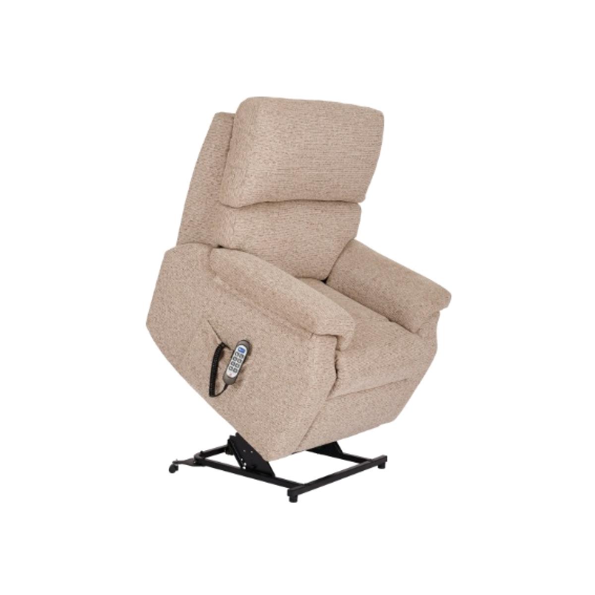 The Celebrity Newstead Rise & Recline Chair is a contemporary design offering superb comfort and support from the high back cushion detail and the pad over Chaise design. Which is available with Innovative power headrest and lumbar support options on the power recliner models. Providing the ultimate action suite in a modern, comfortable design, with wide two-cushion seat back on the 3-seat settee. Aquaclean® technology is a revolutionary fabric treatment that allows you to clean stains using water only. This provides you with simple fabric maintenance in the minimum amount of time. Aquaclean helps to remove all household stains (wine, ink, sauce, fat, mud, chocolate, etc.) making life easier and giving you more time for the more important things Available in any Celebrity Fabric, Aquaclean fabric or the exclusive Salento leather. Aquaclean® technology is a revolutionary fabric treatment that allows you to clean stains using water only. Safe Front® reduces bacterial activity by 99.9% after 24 hour 5 Year Guarantee Dimensions: Height: 109.5cm Width: 95cm Depth:94.5cm Seat Height 51cm Seat Width 46cm Seat Depth 51cm All screens vary in colour reproduction and whilst every effort has been made to display the colour as accurately as possible it is for guidance only