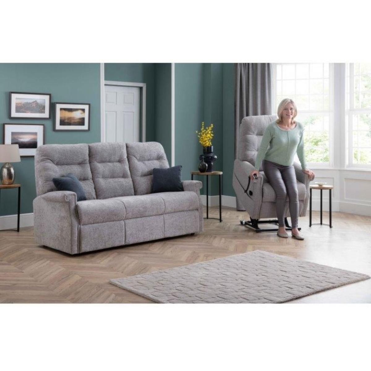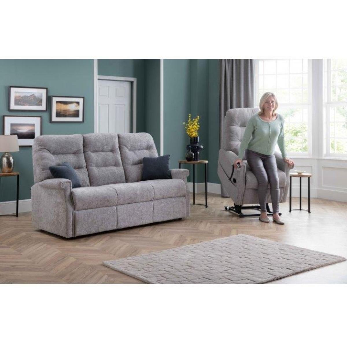 The Sandhurst Range is a modern addition to the Celebrity portfolio.  With distinctive square arm detailing and a new design side pocket fitted to all powered handset models, the Sandhurst is a comfortable and stylish all action suite. All fabric models are fitted with Mammoth Medical Grade Foam Seating Technology. Sandhurst Dual Motor Riser Recliners are available with an adjustable headrest (handset only).  Features: Made in the UK. 5 Year Guarantee Available in a range of fabrics and colours 3 Seater Dimensions: Height -109cm Width - 190cm Depth - 91cm Seat Height - 49.5cm Seat Width - 157.5cm Seat Depth - 52cm. *Please note, all screens vary in colour reproduction and whilst every effort has been made to display the colour as accurately as possible it is for guidance only.