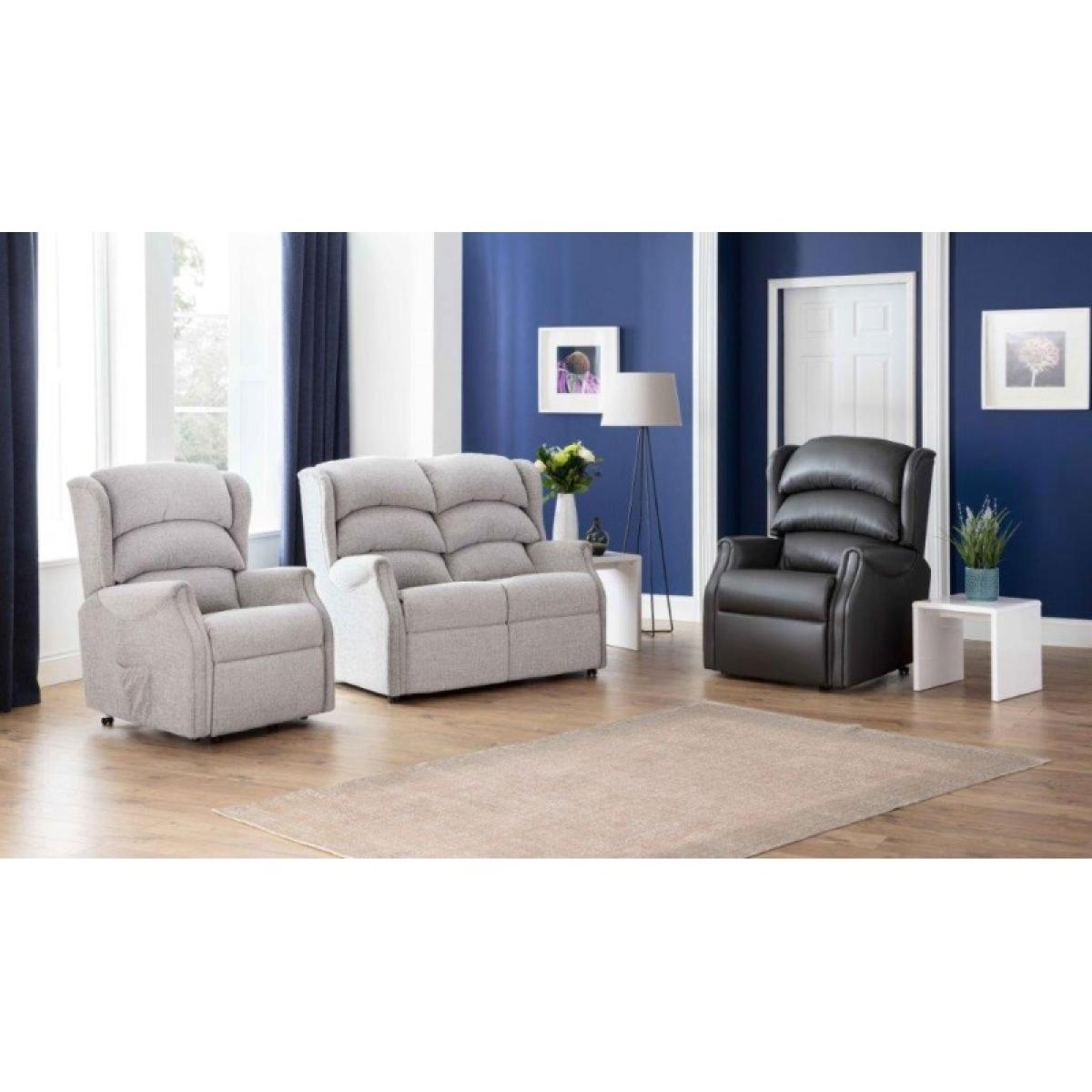 The Westbury range offers both comfort and the reassurance of solid wooden knuckle. Designed for extra comfort, the supportive triple pillow back fibre cushions are a popular choice. The solid beech wood 'grab' handle is integrated into the chair frame for more durability. All fabric models are fitted with Mammoth Grade Foam Seating Technology and all models are available in Celebrity fabric or Leather. If preferred the Westbury can be manufactured with a knuckle.  Available in 3 sizes, Grande, Standard and Petite with matching fixed 2 and 3 seat settees.  All Westbury fabric models come with Mammoth Medical Grade Foam Seating Technology as standard. Westbury Dual Motor Riser Recliner chairs are also available with an adjustable headrest.  Celebrity has over 30 years experience creating quality upholstered furniture and are one of the UK's leading manufacturers of rising/recliner chairs. Every piece of upholstery is specifically designed for comfort and is made using the traditional skills of local craftsmen in their 108,00 square foot factory in Nottinghamshire. Chair Dimensions Height 110cm  Width 78cm  Depth 86cm.  Seat Dimensions -  Height 49cm  Width 48cm  Depth 50cm.  All Celebrity Lifestyle models are covered by the Celebrity 5-year guarantee. All dimensions are approximate. Allow a minimum tolerance of 13mm on each dimension quoted and dimensions will alter slightly after use. Every piece of timber used is a unique material designed and produced by nature itself. Therefore, cannot guarantee an exact match between pieces. All screens vary in colour reproduction and whilst every effort has been made to display the colour as accurately as possible it is for guidance only.