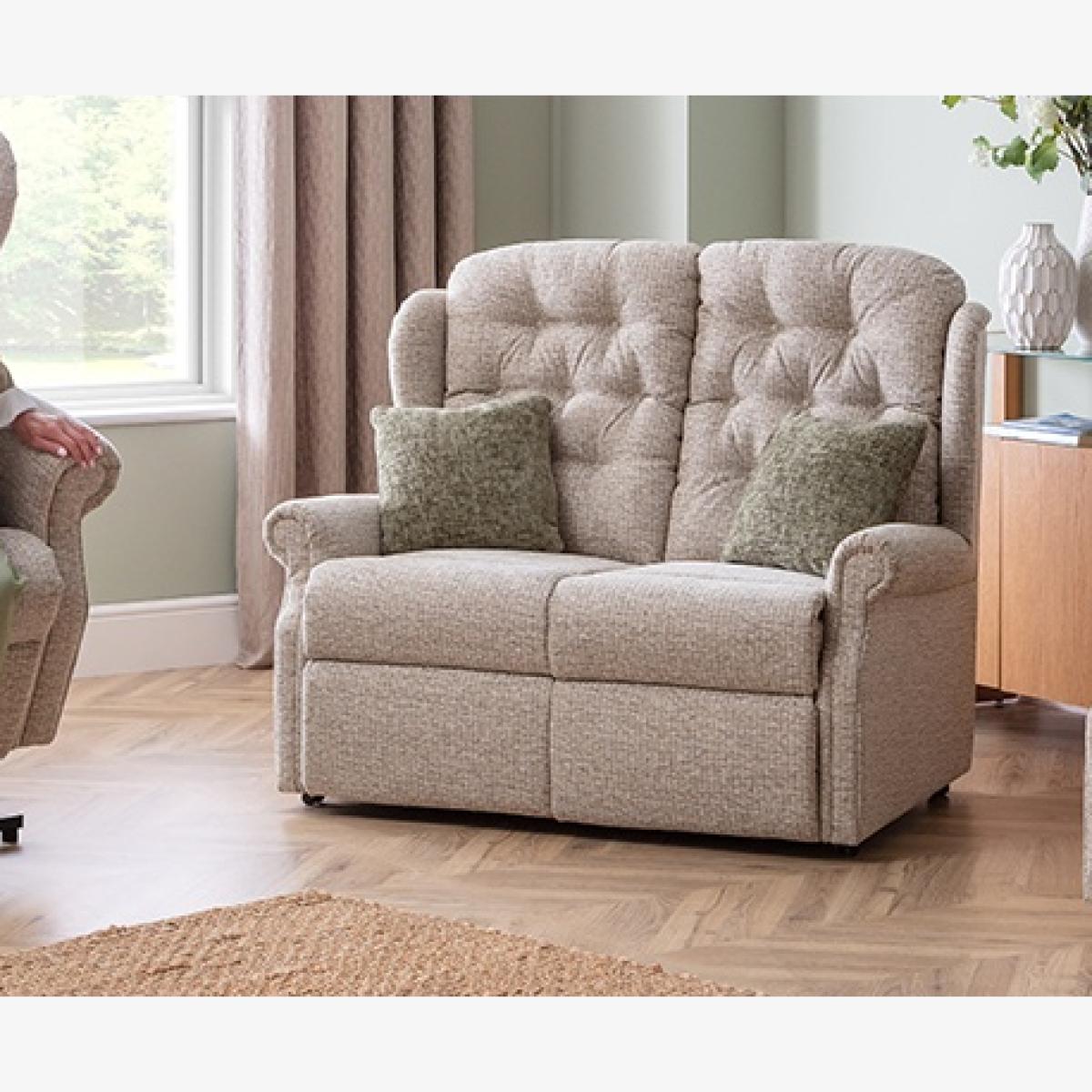 The Woburn is our most popular sofa, featuring a deep buttoned back, supportive sit and supportive scroll arms. Celebrity has over 30 years experience creating quality upholstered furniture and are one of the UK's leading manufacturers of rising/recliner chairs. Every piece of upholstery is specifically designed for comfort and is made using the traditional skills of local craftsmen in their 108,00 square foot factory in Nottinghamshire. All Celebrity furniture comes with a 5 year peace of mind guarantee. Available in 2 seater and 3 seater in any Celebrity swatch fabric or leather. All Woburn fabric models* including fixed and settees are fitted with Mammoth Medical Grade Foam Seating Technology as standard. *Excludes Woburn Legged and leather models. All powered models are fitted with handsets as standard, power buttons and Classic handsets are available by request. An adjustable headrest option, providing another level of comfort can be added to all Woburn Dual Motor Riser Recliner (handset) chairs. 2 Seater Overall Dimensions Height 111cm Width 138cm Depth 89cm. Seat Dimensions - Height 51cm Width 105cm Depth 55.5cm Please note, all screens vary in colour reproduction and whilst every effort has been made to display the colour as accurately as possible it is for guidance only.