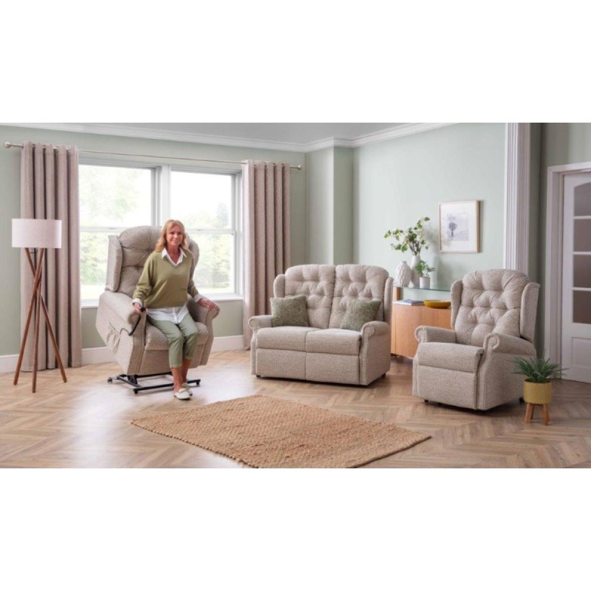 The Woburn is our most popular sofa, featuring a deep buttoned back, supportive sit and supportive scroll arms. Available in 2 and 3 seater sizes, in any Celebrity swatch fabric or leather. Celebrity has over 30 years experience creating quality upholstered furniture and are one of the UK's leading manufacturers of rising/recliner chairs. Every piece of upholstery is specifically designed for comfort and is made using the traditional skills of local craftsmen in their factory in Nottinghamshire. Features: Made in the UK 5 Year Guarantee 2 Seater Dimensions: Height - 111cm Width - 133cm Depth - 86.5cm Seat Height - 51cm Seat Width - 100cm Seat Depth - 53cm All Woburn fabric models* including fixed and settees are fitted with Mammoth Medical Grade Foam Seating Technology as standard. *Excludes Woburn Legged and leather models. All screens vary in colour reproduction and whilst every effort has been made to display the colour as accurately as possible it is for guidance only.
