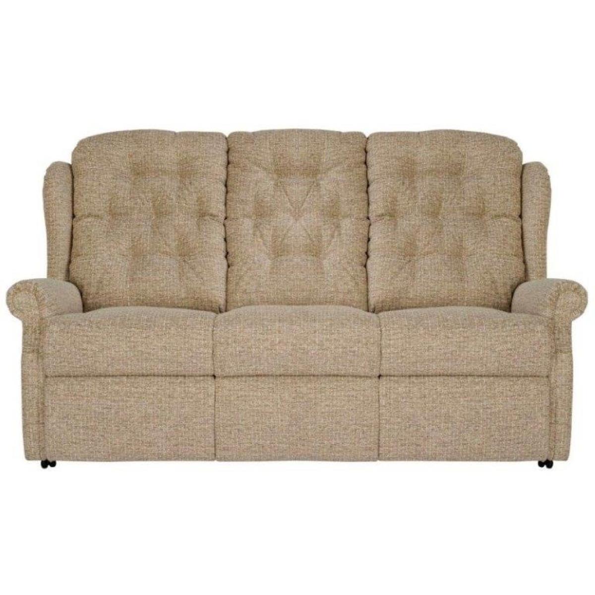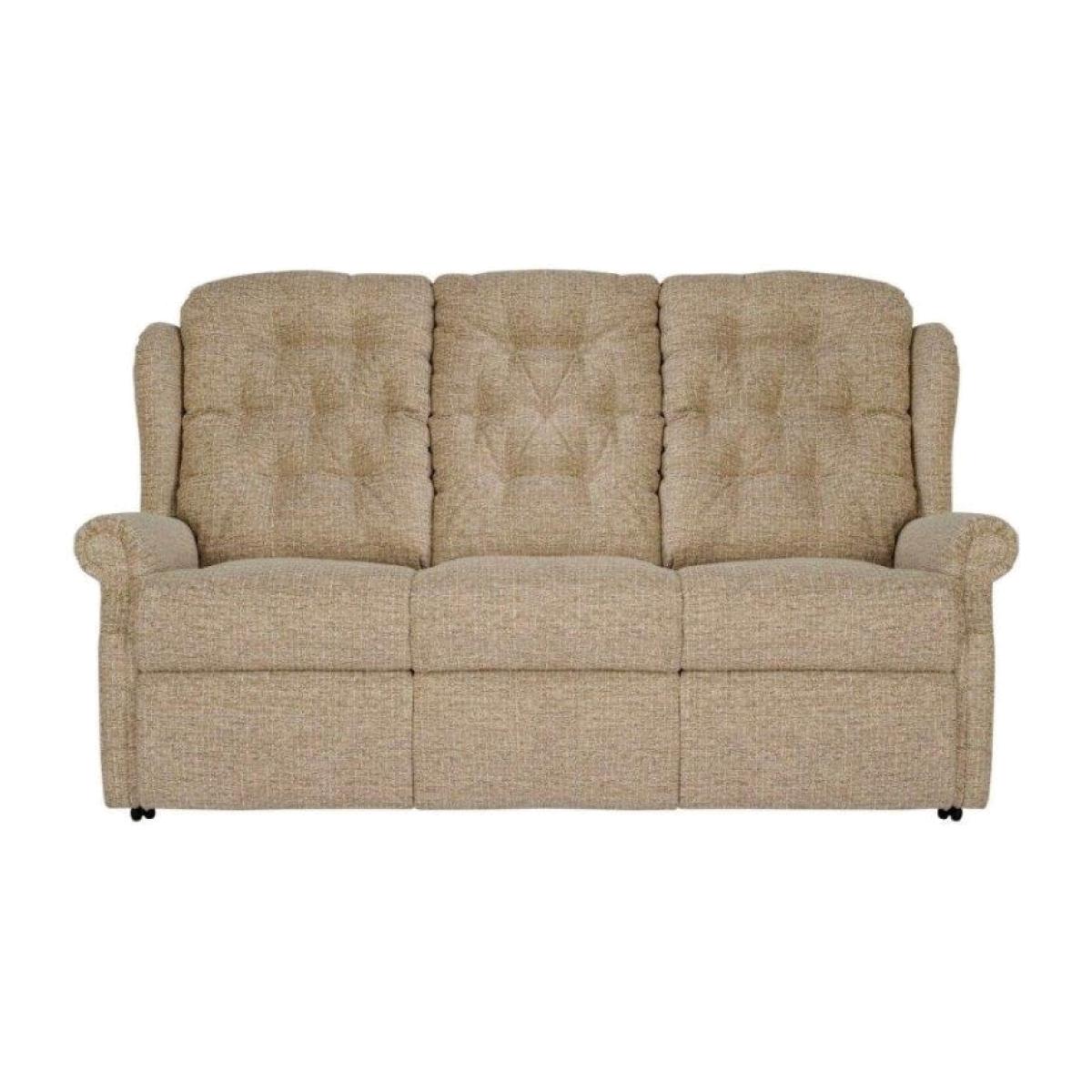 The Woburn is our most popular sofa, featuring a deep buttoned back, supportive sit and supportive scroll arms. Celebrity has over 30 years experience creating quality upholstered furniture and are one of the UK's leading manufacturers of rising/recliner chairs. Every piece of upholstery is specifically designed for comfort and is made using the traditional skills of local craftsmen in their 108,00 square foot factory in Nottinghamshire. All Celebrity furniture comes with a 5 year peace of mind guarantee. Available in 2 seater and 3 seater in any Celebrity swatch fabric or leather. All Woburn fabric models* including fixed and settees are fitted with Mammoth Medical Grade Foam Seating Technology as standard. *Excludes Woburn Legged and leather models. All powered models are fitted with handsets as standard, power buttons and Classic handsets are available by request. An adjustable headrest option, providing another level of comfort can be added to all Woburn Dual Motor Riser Recliner (handset) chairs. 3 Seater Overall Dimensions Height 111cm Width 191cm Depth 89cm Seat Dimensions - Height 51cm Width 158 cm Depth 55.5cm Please note, all screens vary in colour reproduction and whilst every effort has been made to display the colour as accurately as possible it is for guidance only.