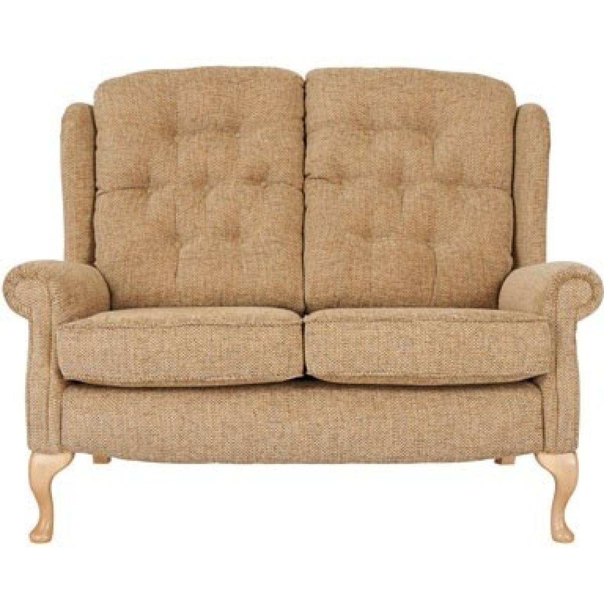 The traditional Woburn Legged fireside range features Queen Anne style real wood legs, supportive scroll arms, and deep buttoned fibre filled back cushions for additional comfort. All legged models are available in any Celebrity fabric or leather, with the wooden legs available in a choice of either Natural, teak or Mahogany shade. Celebrity have over 30 years experience creating quality upholstered furniture and are one of the UK's leading manufacturers of rising/reclining chairs. every piece of upholstery is specifically designed or comfort and is made using the traditional skills of local craftsmen in their 108,00 square foot factory in Nottinghamshire. All celebrity furniture comes with a 5 year piece of mind guarantee. Matching legged footstools are also available in any Celebrity fabric or leather to complete your suite. 2 Seater Sofa Dimensions Height: 108cm Width: 132cm Depth: 86cm Seat Height: 52cm Seat Width: 99cm Seat Depth: 52cm All Celebrity Woburn models are covered by the Celebrity 5-year guarantee. All dimensions are approximate. Allow a minimum tolerance of 13mm on each dimension quoted and dimensions will alter slightly after use. Every piece of timber used is a unique material designed and produced by nature itself. Therefore, cannot guarantee an exact match between pieces. All screens vary in colour reproduction and whilst every effort has been made to display the colour as accurately as possible it is for guidance only.