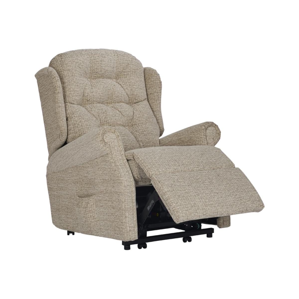 The Woburn is our most popular riser recliner, featuring a deep buttoned back, supportive sit and stylish scroll arms. Celebrity has over 30 years experience creating quality upholstered furniture and are one of the UK'S leading manufacturers of rising/reclining chairs. Every piece of upholstery is specifically designed for comfort and is made using the traditional skills of local craftsmen in the 108,00 square foot factory in Nottinghamshire. All Celebrity furniture comes with a 5 year piece of mind guarantee. Available in 4 chair sizes Grande, Standard, Compact and Petite, on ZipSPEE D delivery in any Celebrity swatch fabric or leather. All Woburn fabric models* including fixed and settees are fitted with Mammoth Medical Grade Foam Seating Technology as standard. *Excludes Woburn Legged and leather models. All powered models are fitted with handsets as standard, power buttons and Classic handsets are available by request. An adjustable headrest option, providing another level of comfort can be added to all Woburn Dual Motor Riser Recliner (handset) chairs. Petite :Chair Dimensions Height 102cm Width 78.5cm Depth 82cm Seat Dimensions Height 46cm Width 44.5cm Depth 48cm Compact :Chair Dimensions Height 104cm Width 80cm Depth 85.5cm Seat Dimensions Height 51cm Width 49cm Depth 51cm. Standard : Chair Dimensions Height109cm Width 80cm Depth 86.5cm Seat Dimensions Height 51cm Width 49cm Depth 53.5cm Grande : Chair Dimensions - Height 113cm Width 93cm Depth 94cm Seat Dimensions Height 52C. M Width 53m Depth 54.5cm All Celebrity Lifestyle models are covered by the Celebrity 5-year guarantee. All dimensions are approximate. Allow a minimum tolerance of 13mm on each dimension quoted and dimensions will alter slightly after use. Every piece of timber used is a unique material designed and produced by nature itself. Therefore, cannot guarantee an exact match between pieces. All screens vary in colour reproduction and whilst every effort has been made to display the colour as accurately as possible it is for guidance only.
