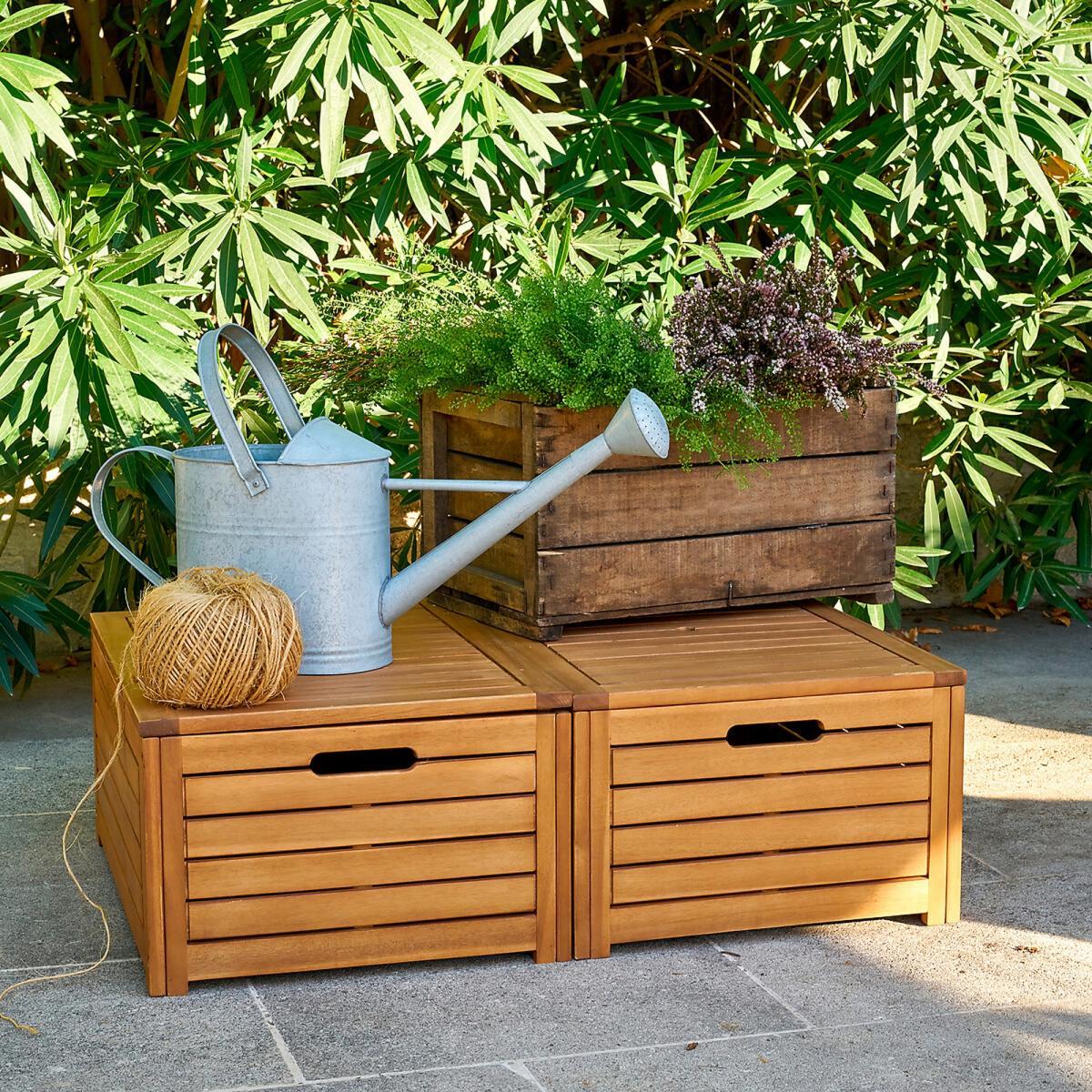 Are you looking for a beautiful and functional outdoor storage crate?? The Celena trunk, crafted in acacia, is the perfect choice. Ideal for storing your garden accessories or your cushions.