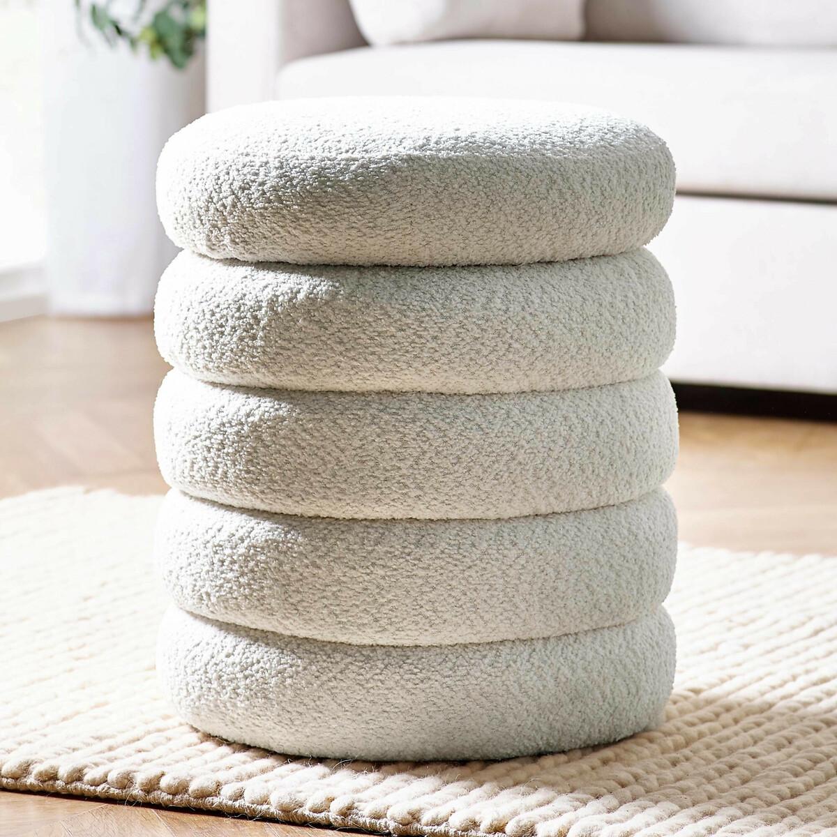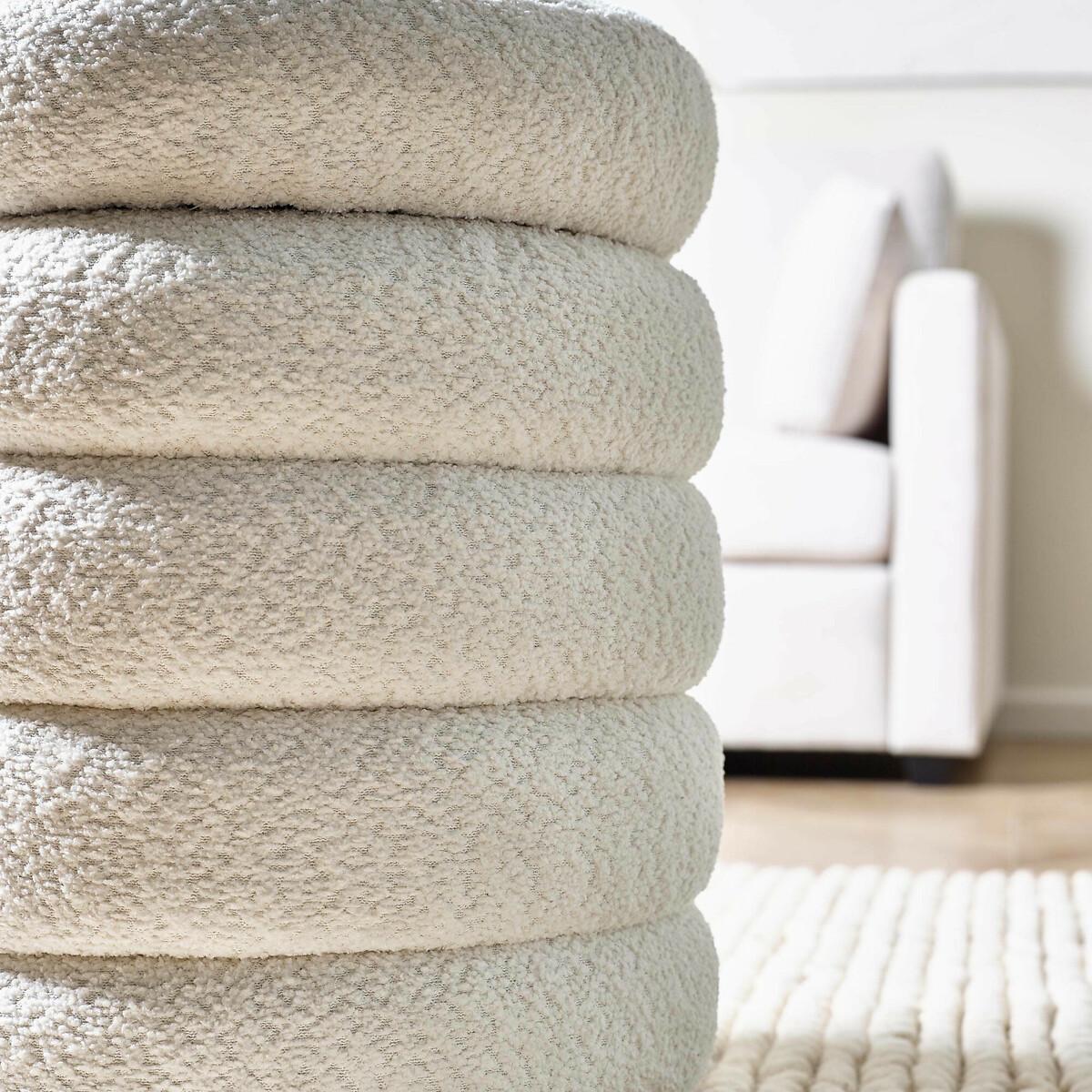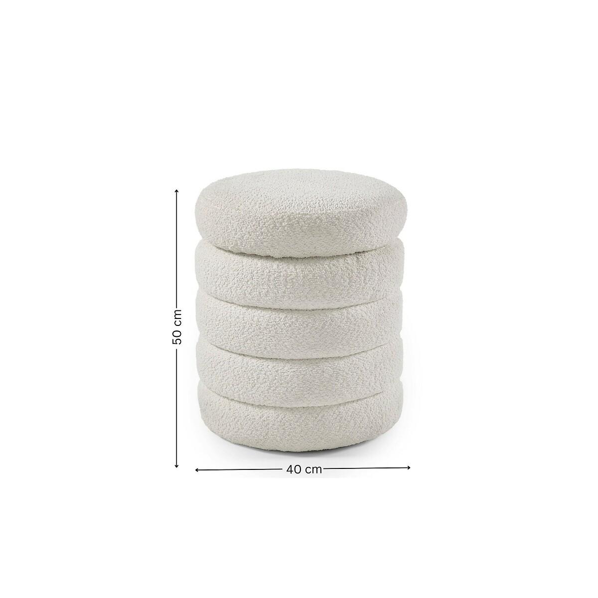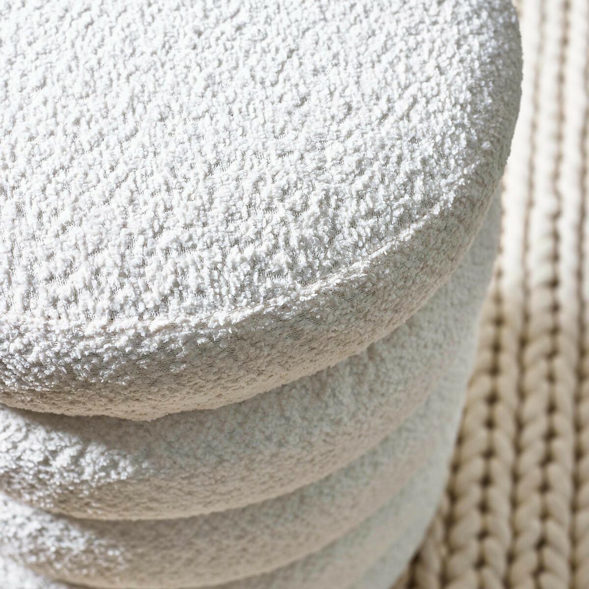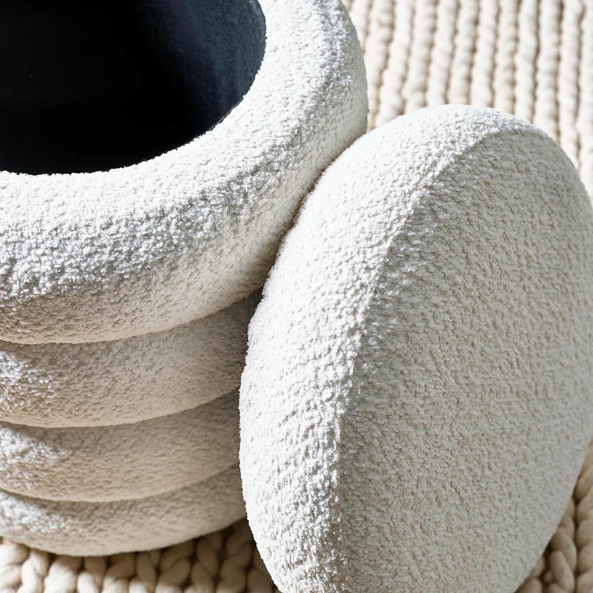 Small but seriously smart. Wrapped in soft bouclé with squishy curves, the Celes storage stool brings texture, warmth and a relaxed elegance to your space. Its rounded shape and curved padding keep the look smooth and inviting, while the cushioned lid lifts to reveal hidden storage for blankets, throws or everyday bits you’d rather keep out of sight. Use it as a footstool, an accent seat, or just a clever clutter-hider — it’s as practical as it is stylish. Product Details • Chunky curve upholstery detailing creates a squishy yet sculptural look • Upholstered in a soft teddy boucle • Ottoman storage compartment • Delivered fully assembled • 12 month manufacturers warranty • Care advice - Wipe with a clean damp cloth. Product Composition - 40% Wood, 40% Boucle Fabric, 20% Foam. Product Dimensions - 40 cm x 40 cm x 50 cm , Weight - 6.4 KGPackage Dimensions - 53 cm x 44 cm x 44 cm, Weight 7.3 KGThis product will be dispatched by one of our trusted suppliers. You’ll be contacted by their selected courier about your delivery. Please note: this product cannot be delivered to all Offshore Islands, Northern Ireland or Republic of Ireland.