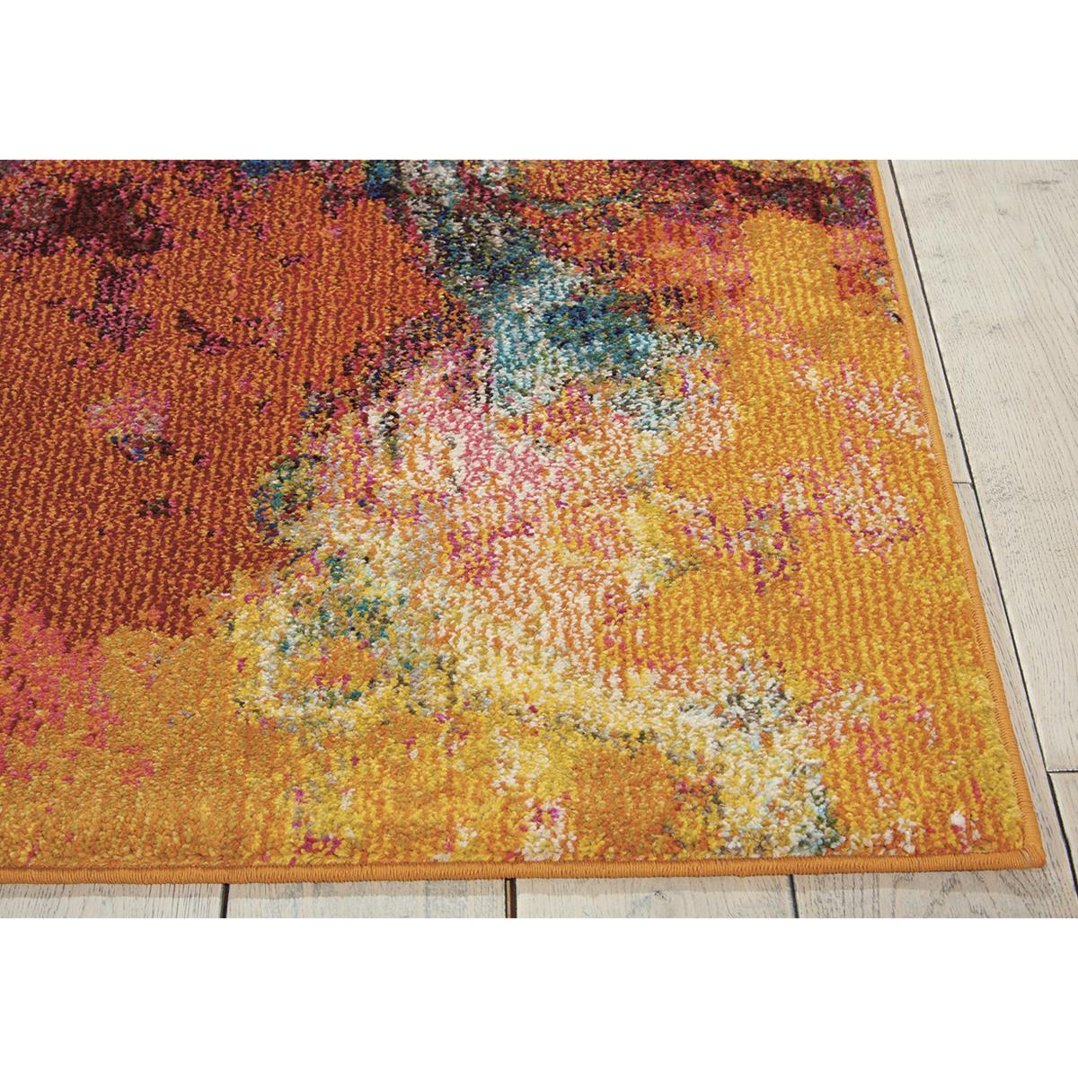 Abstract cloud-like shapes float across the stunning contemporary Celesta Burst rug. Gorgeously colourful yet showing painterly restraint, this rug melds vivid oranges and yellows with beautiful reds and blues. Colour transitions are ethereal, matched in softness only by the feel of this rug underfoot. Carefully machine woven, it’s also incredibly hardwearing and a great choice for well-trafficked rooms and busy family spaces. The Celesta Burst rug is one of three stunning rugs in the Celesta rug collection. Each one features a different nature-inspired theme – seashore, skies, and waves – and is available in three sizes.